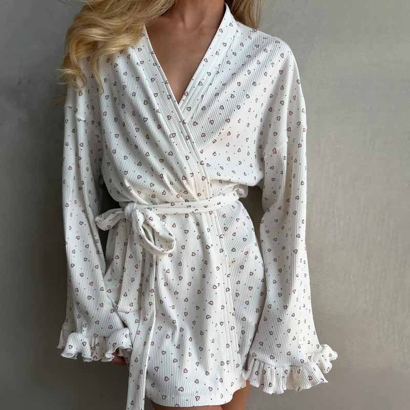 여성 홈 의류 2025 유럽과 미국의 나이트 가운 느슨한 사랑 레이스 캐주얼 프린트 긴 소매 국경 가을 및 겨울 레이스 업