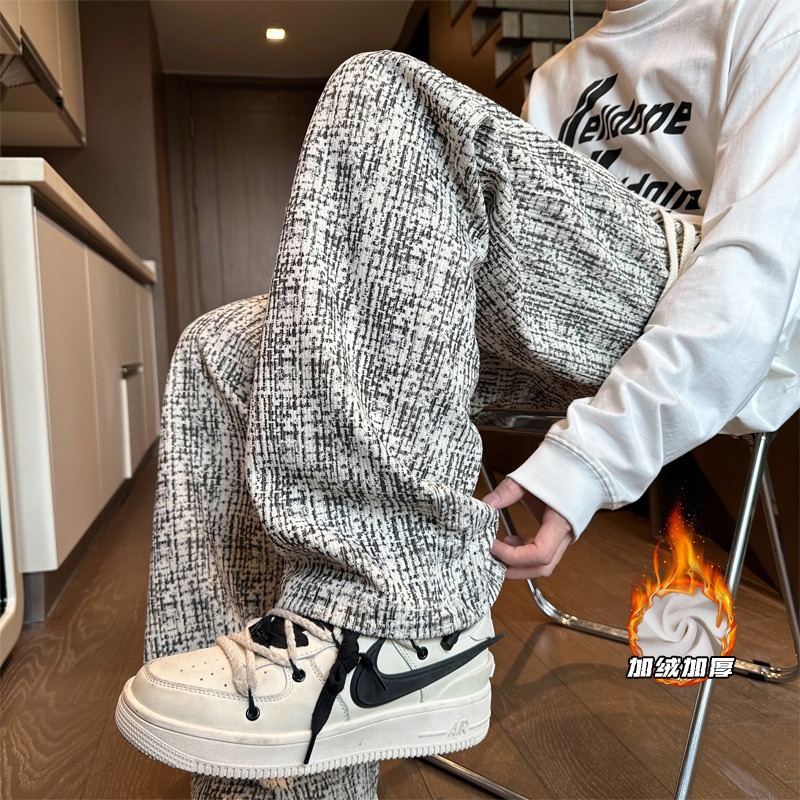 미국 타이 다이 코듀로이 바지 가을/겨울 남자 기모 두꺼운 무거운 바지 느슨한 넓은 다리 다운 캐주얼 바지스토어 가기