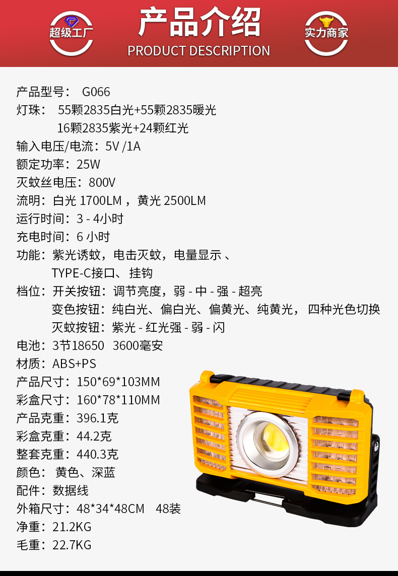 국경 간 새로운 야외 모기 램프 작업 램프 멀티 모드 조명 휴대용 서치 조명 조경 램프 휴대용