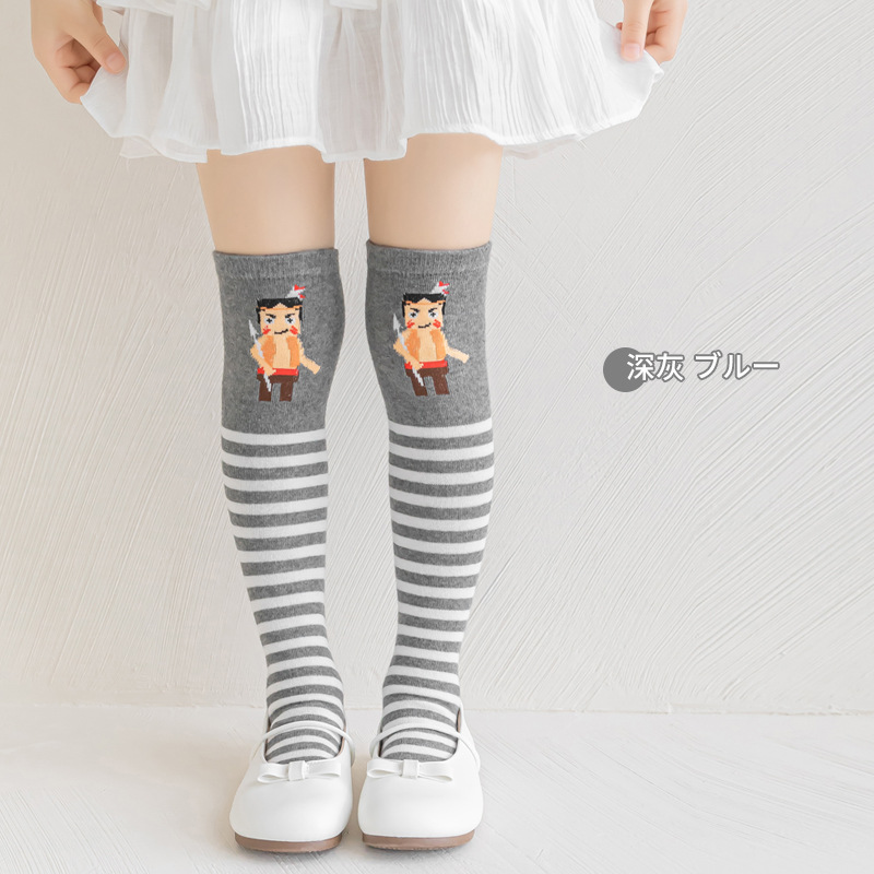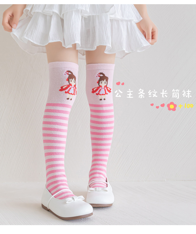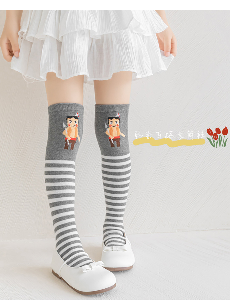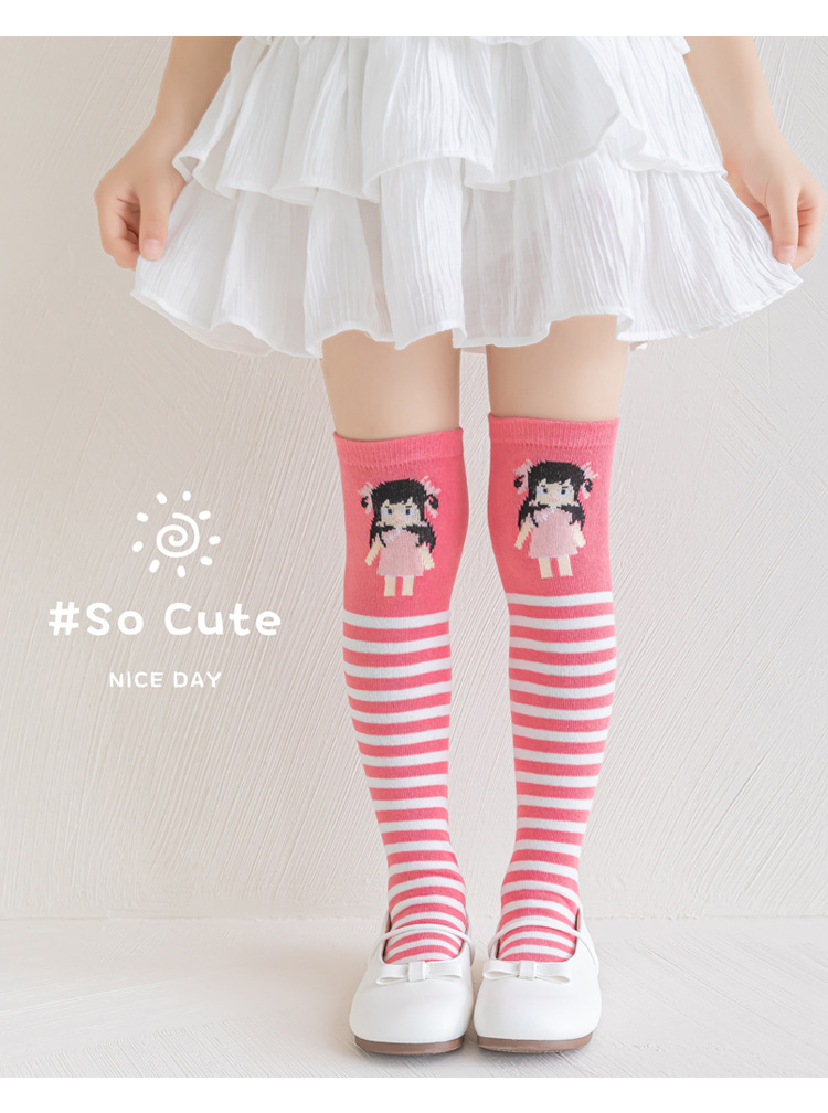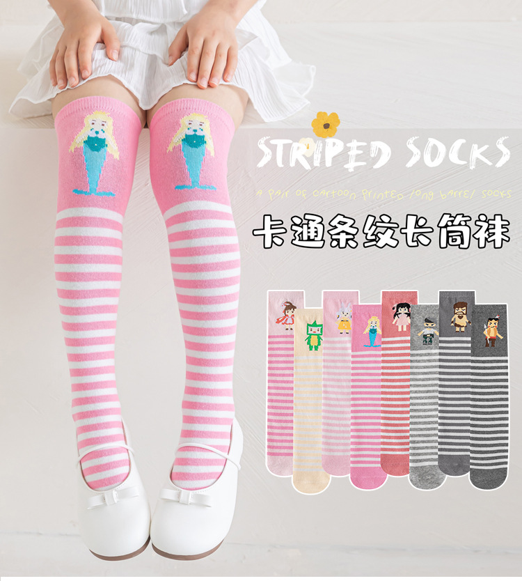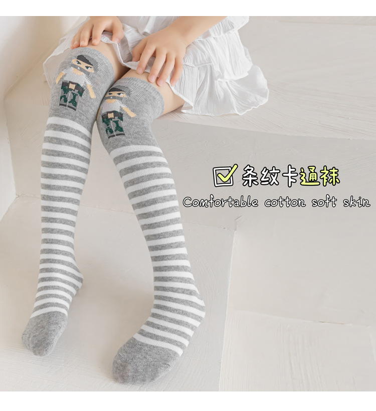 어린이 스타킹 봄과 가을 얇은 코튼 무릎 높이 스타킹 소년과 소녀 아기 만화 귀여운 미드 튜브 양말
