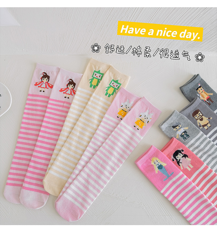 어린이 스타킹 봄과 가을 얇은 코튼 무릎 높이 스타킹 소년과 소녀 아기 만화 귀여운 미드 튜브 양말스토어 가기