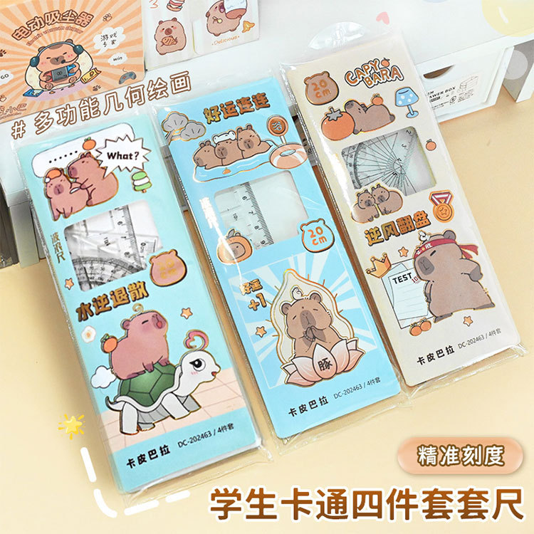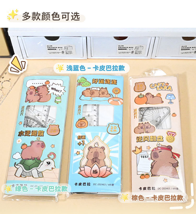 Kappi Bala 통치자 삼각형 통치자 각도기 학생 높은 색상 그리기 통치자 세트 통치자 세트 4 조각 세트스토어 가기
