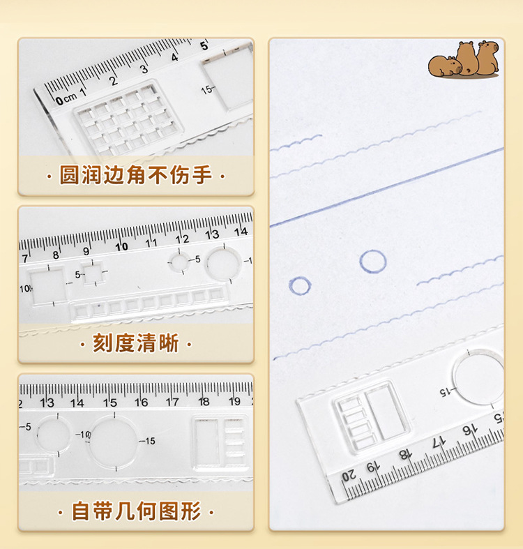Kappi Bala 통치자 삼각형 통치자 각도기 학생 높은 색상 그리기 통치자 세트 통치자 세트 4 조각 세트