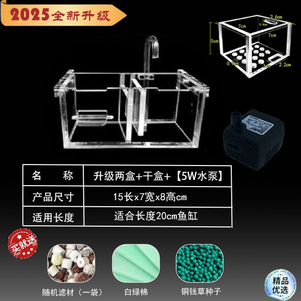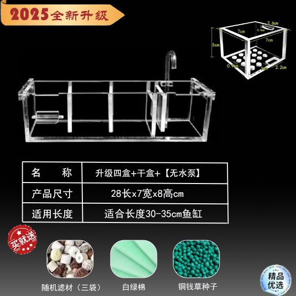 물고기 탱크 필터 상자 필터 작은 벽 자체 만든 정수 순환 3 대 1 시스템 물 펌프 산소 건조 및 습식 분리스토어 가기