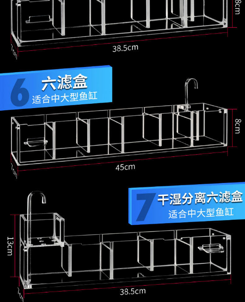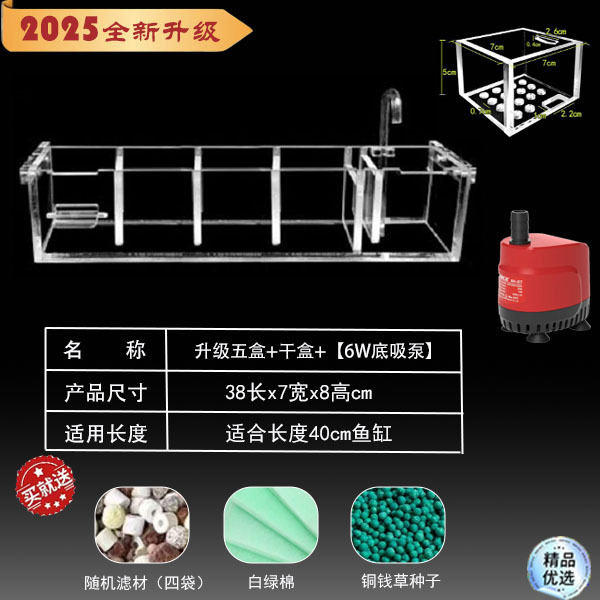 • **6개 상자 + 드라이 박스 + 6W 하단 흡입 펌프**