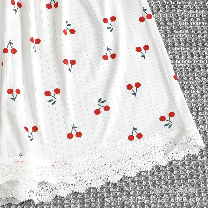 유럽과 미국 스타일의 여성 잠옷 가을과 여름 섹시한 V-Neck 레이스 체리 프린트 티셔츠 슬림 핏 반바지 홈 의류