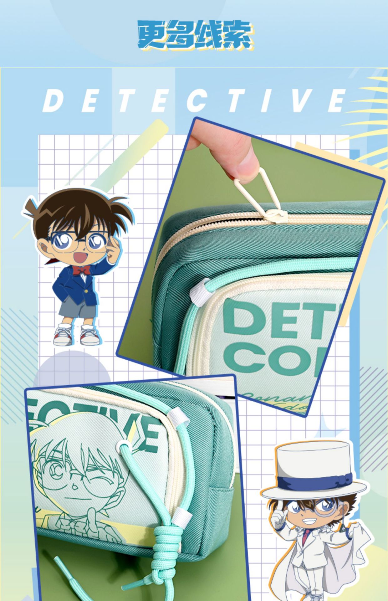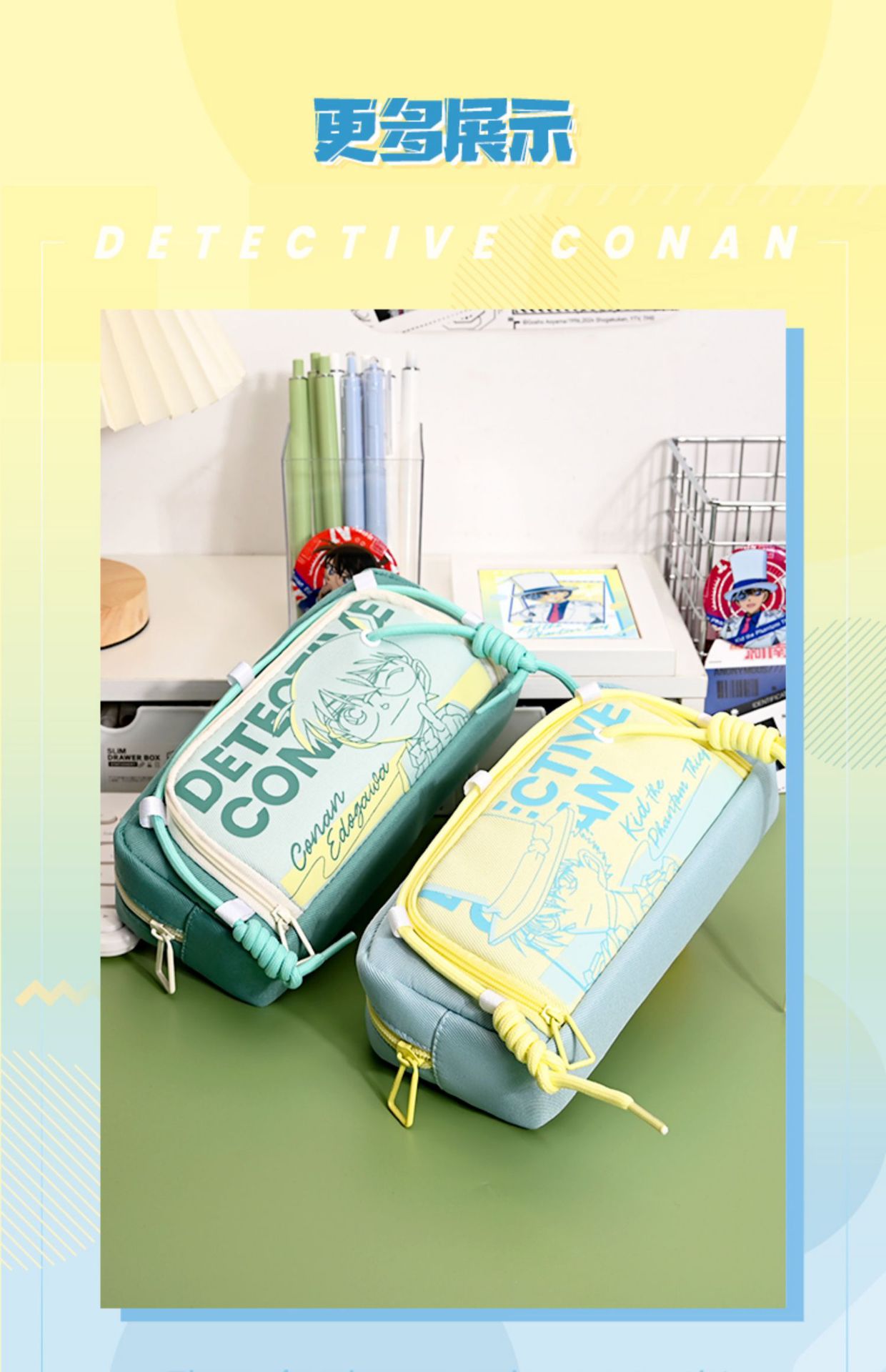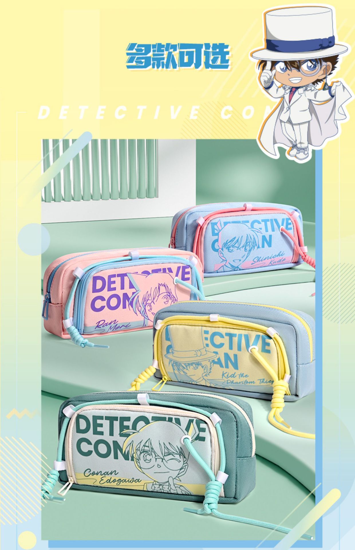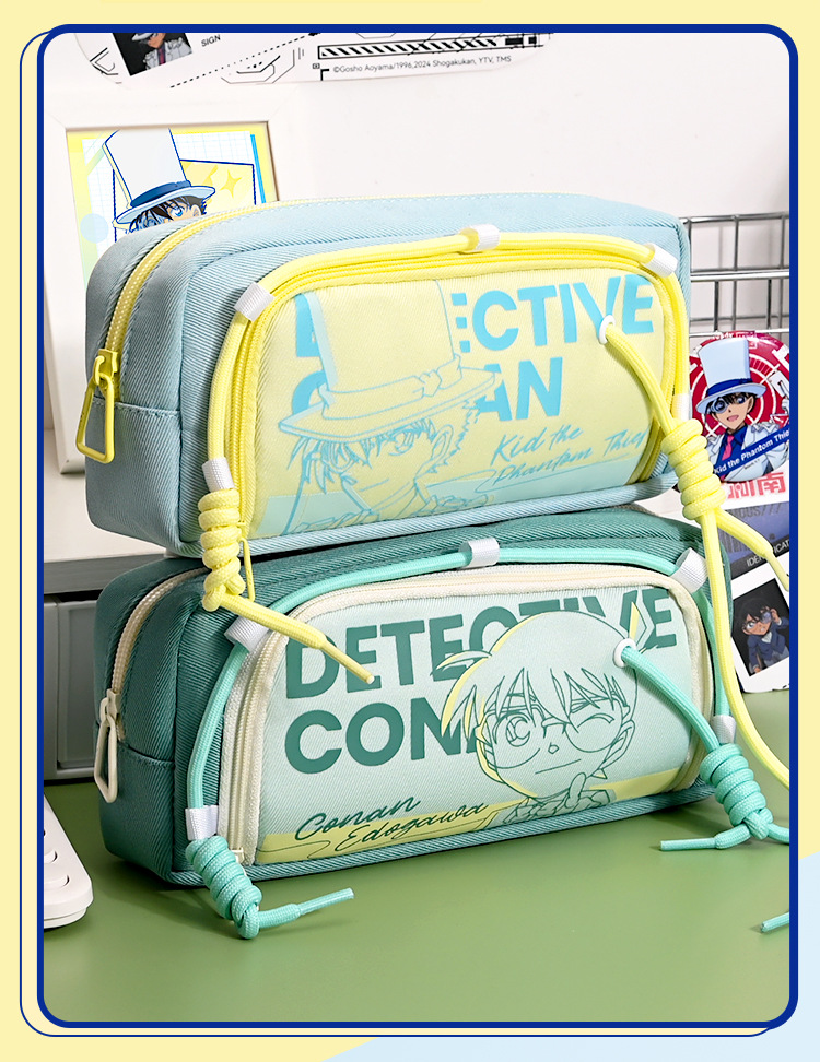 새로운 2025 명탐정 코난 연필 가방 공동 브랜드 문구 상자 새로운 Kaitou Kid 학생 대용량 문구 가방스토어 가기