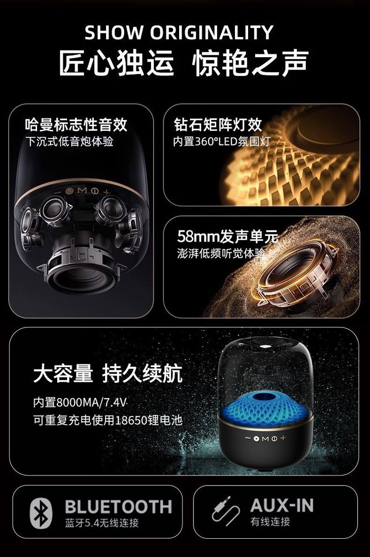 화창북 하만카돈 크리스탈 4 블루투스 스피커 가정용 데스크탑 맨해튼 고출력 오디오 서브우퍼