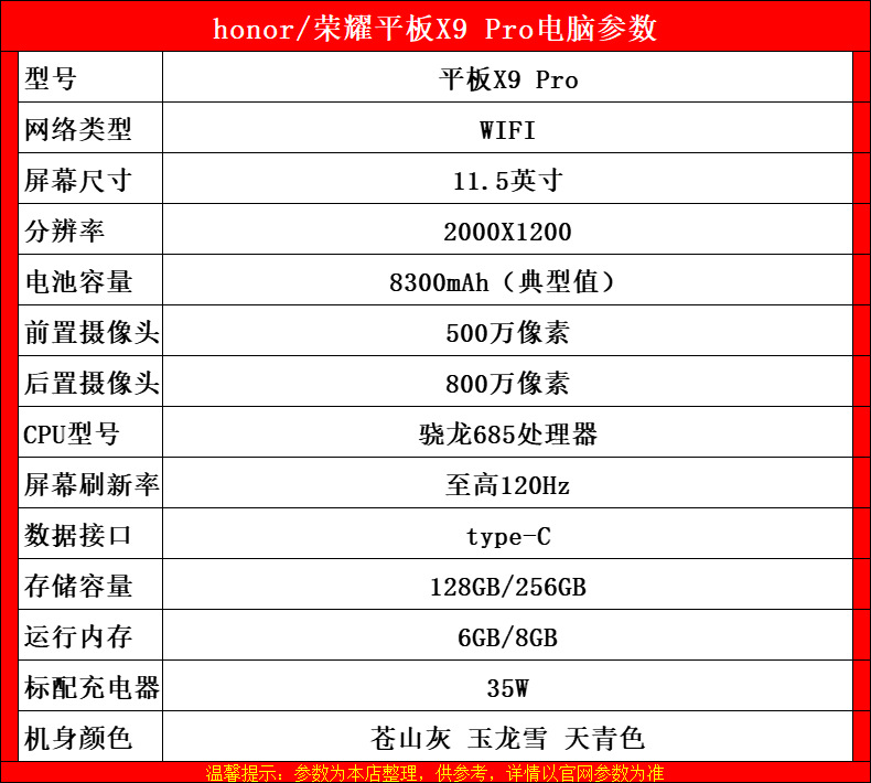 Honor Tablet X9Pro 태블릿 컴퓨터 11.5inch 고주사율 안드로이드 사무실 학습 학생 시험스토어 가기