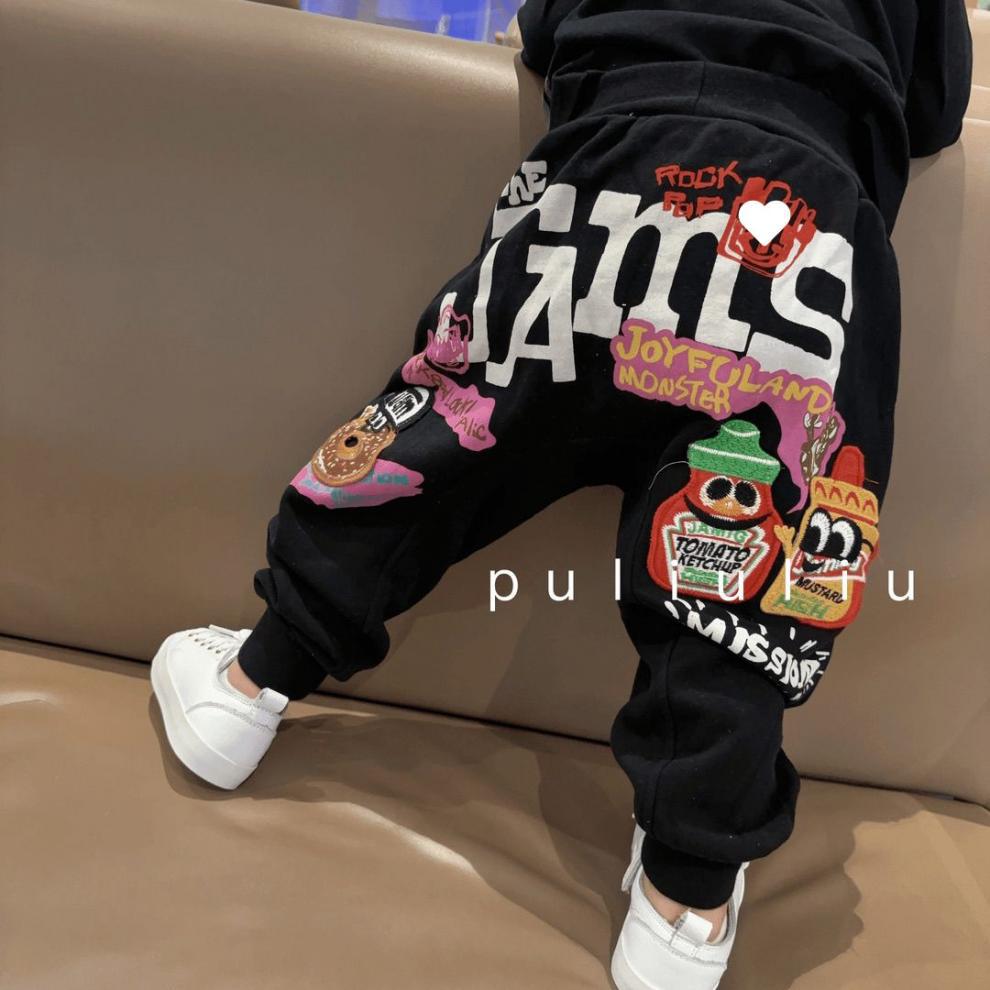 새로운 아동복 일본 어린이 캐주얼 느슨한 할란 소녀 만화 바지 바지 만화 올 매치 베이비 코튼스토어 가기