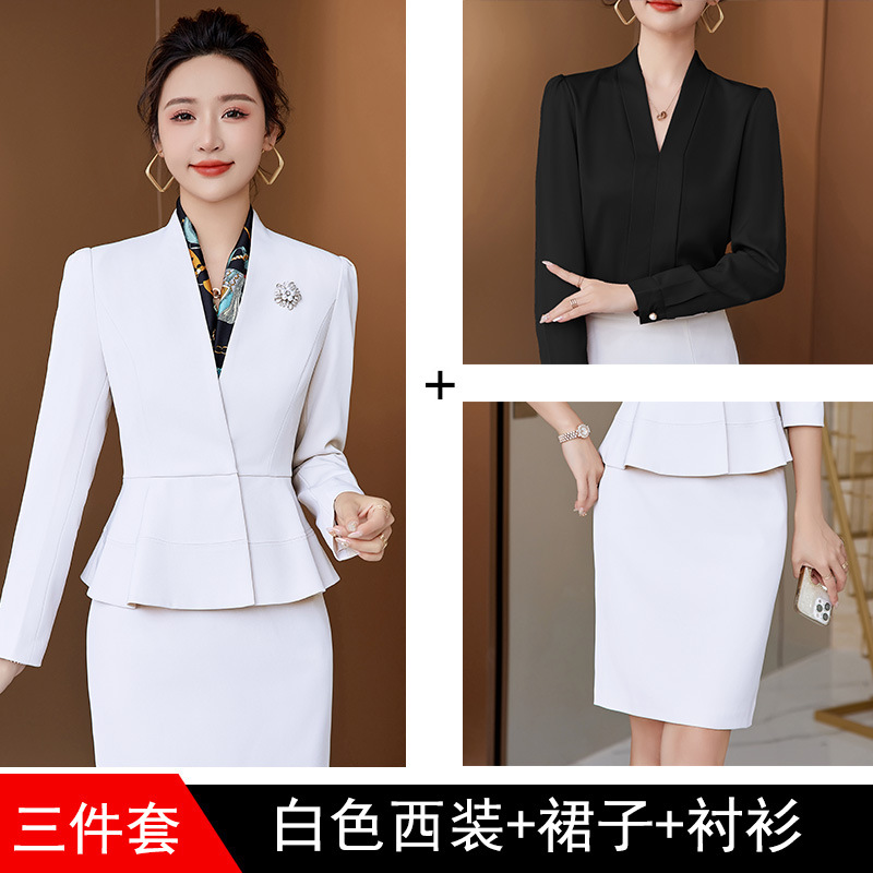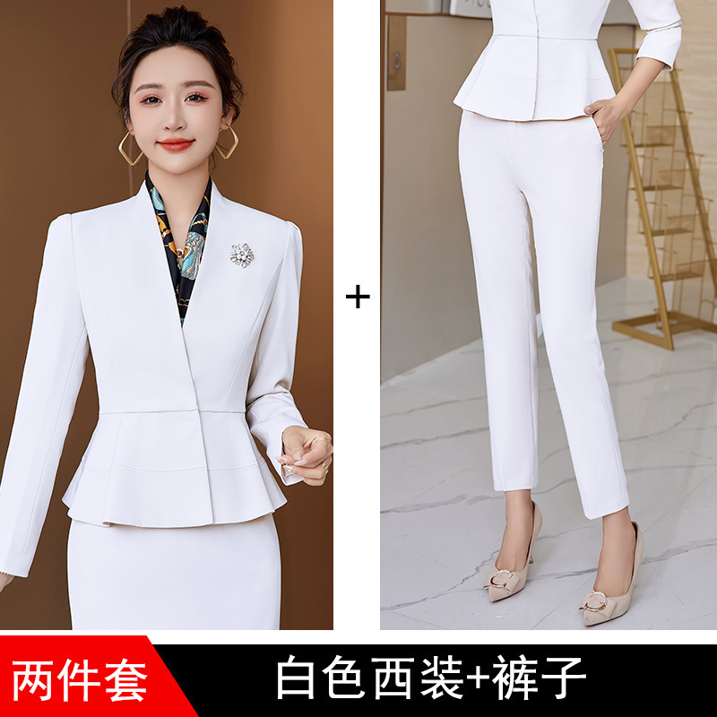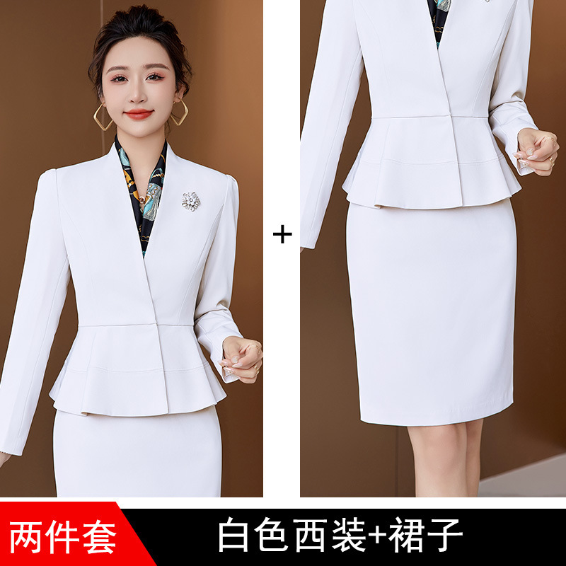 호텔 프론트 데스크 작업 원피스 여성 여름 하이 엔드 화이트 세트 원피스 기질 뷰티 살롱 쥬얼리 전문 원피스