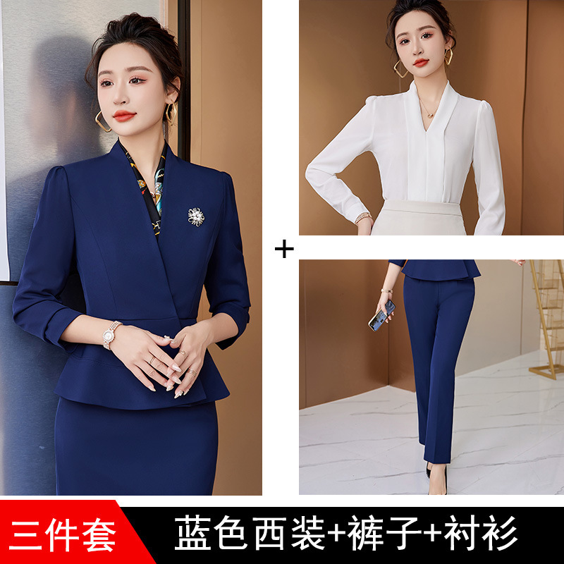 • 파란색 정장 + 바지 + 흰색 셔츠
