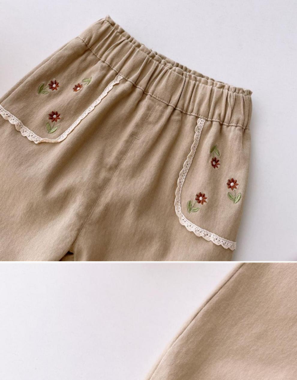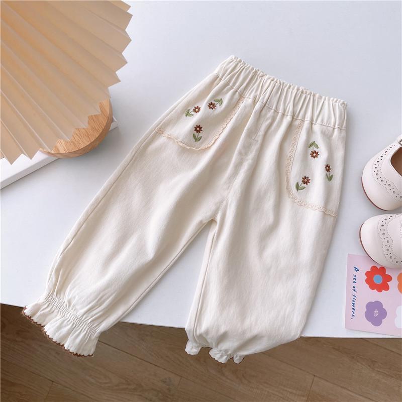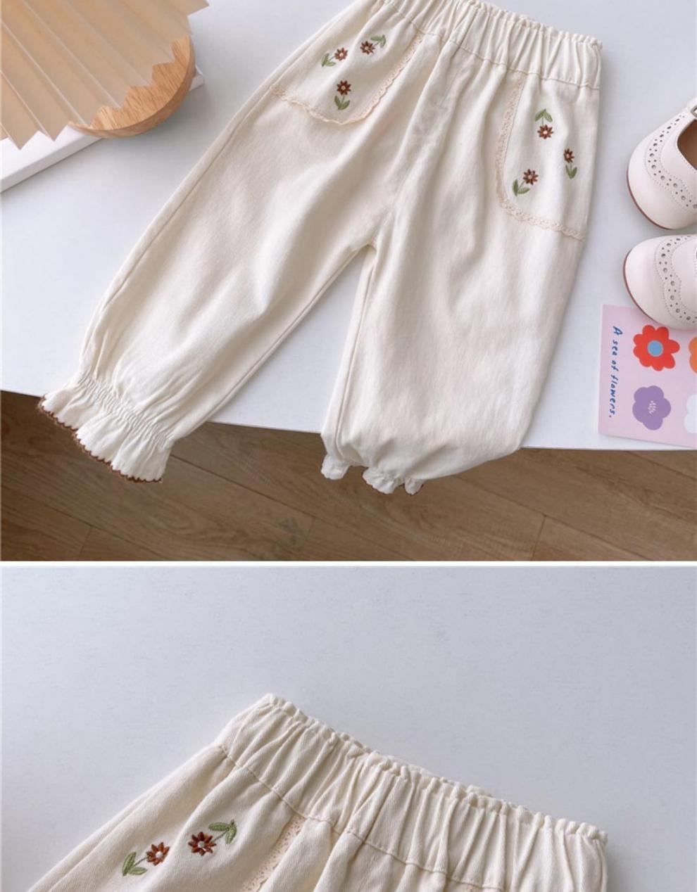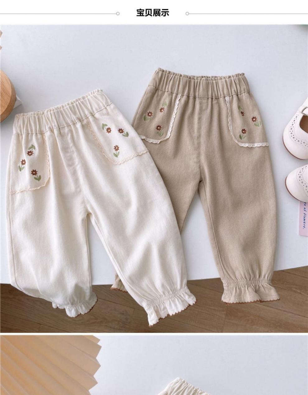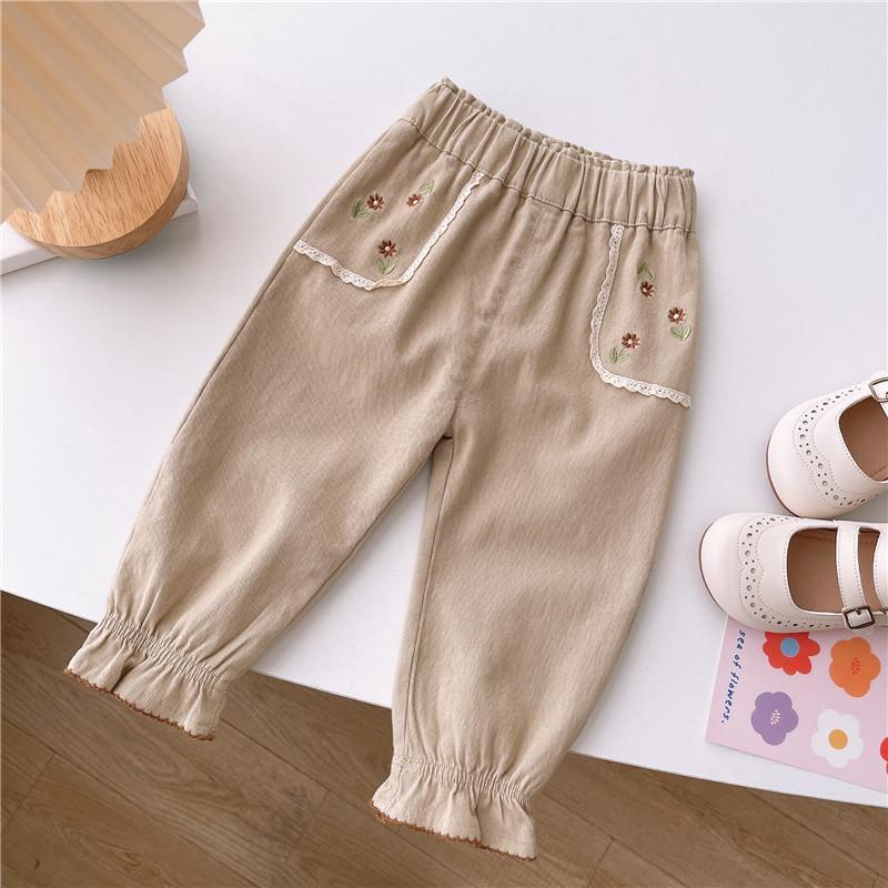 소녀 바지 얇은 한국 스타일 봄과 가을 꽃 자수 블루머스 공주 아기 바지 유행 소녀 바지스토어 가기