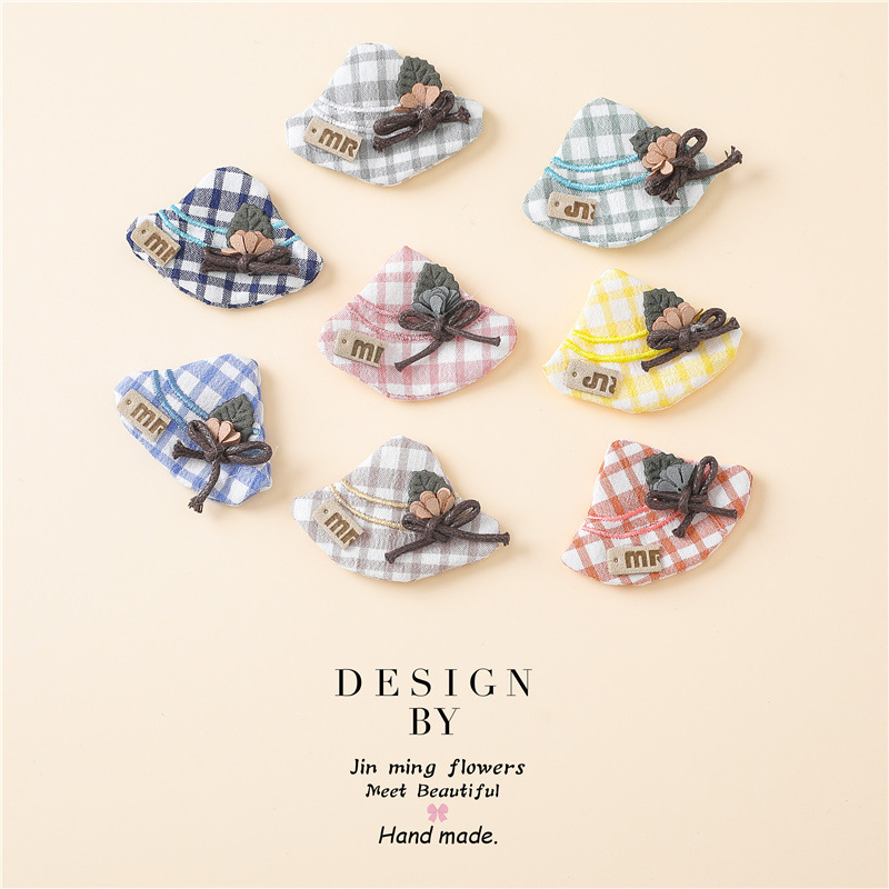 DIY 패브릭 자수 수제 꽃 한국 어린이 헤어 액세서리 만화 인형 인형 액세서리 체크 무늬 모자
