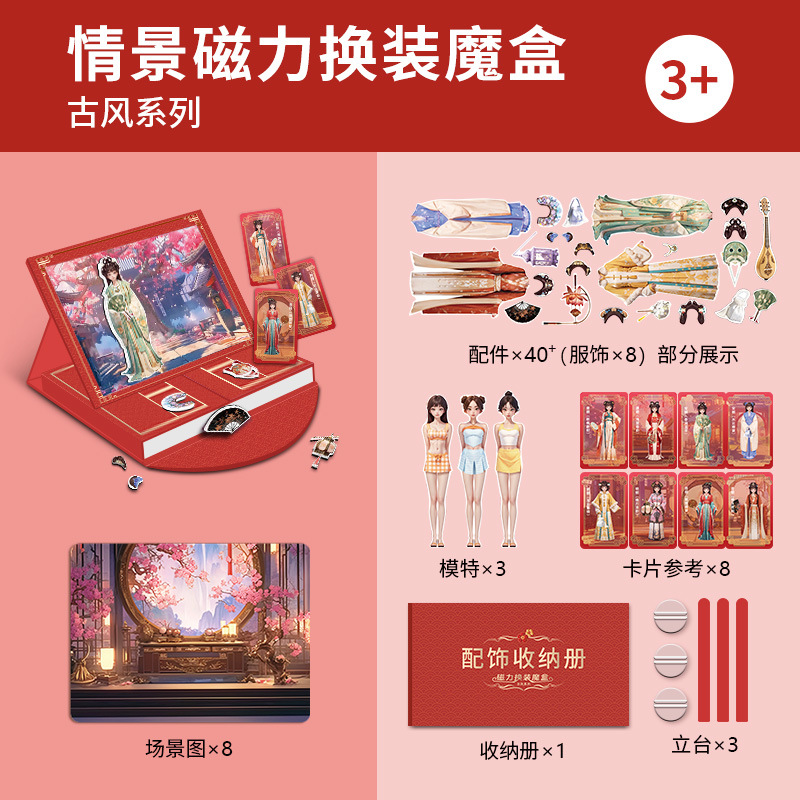 • 자석 드레스업 상자-고대 스타일-40+의류 액세서리+8*장면
