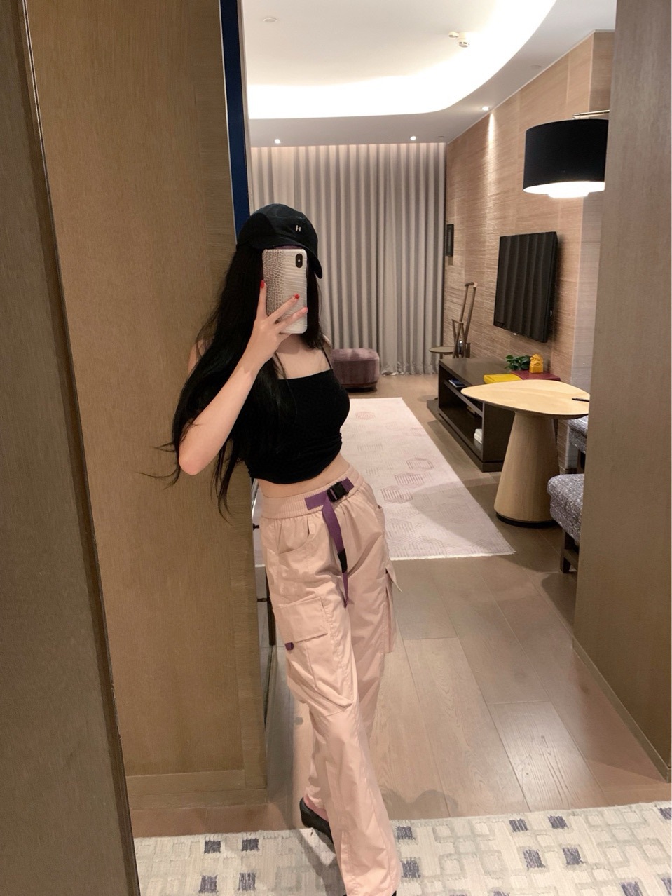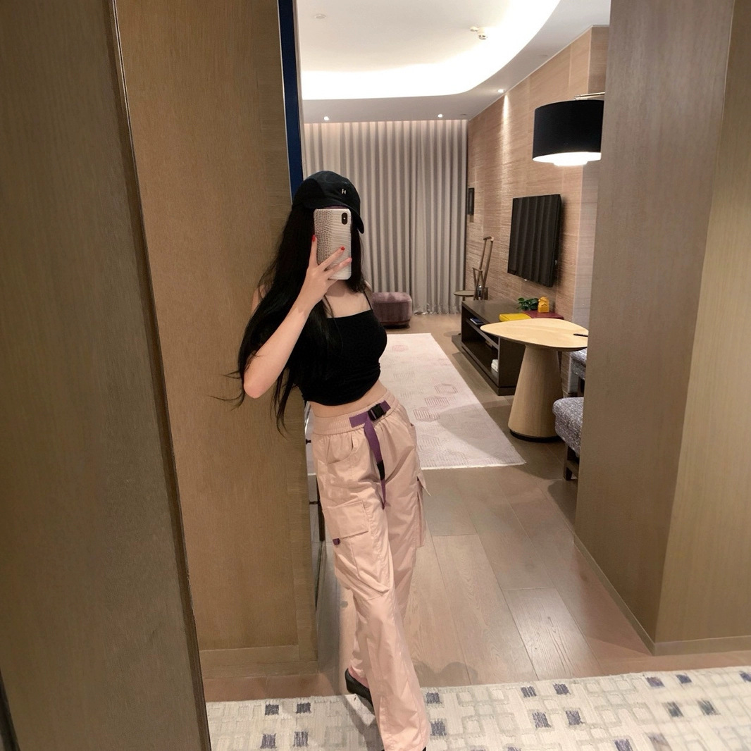 2025 새로운 스타일 오버홀 여성의 봄과 가을 느슨한 직선 바지 미국 스타일의 십대 멀티 포켓 와이드 다리 바지