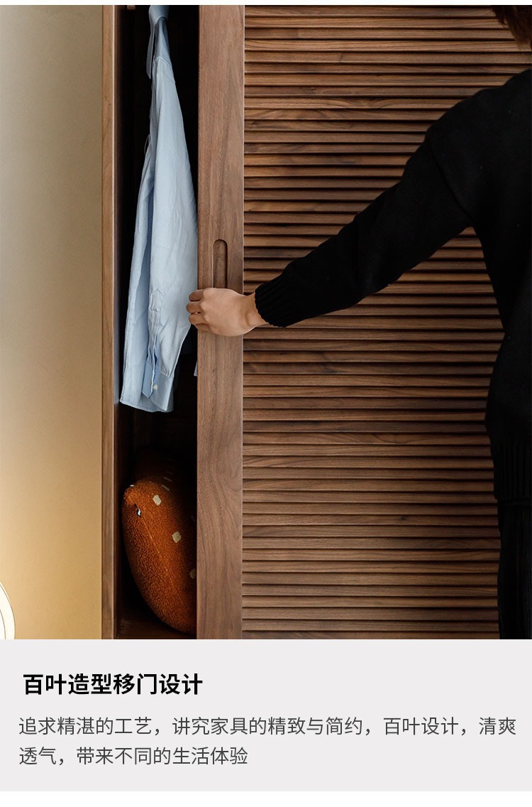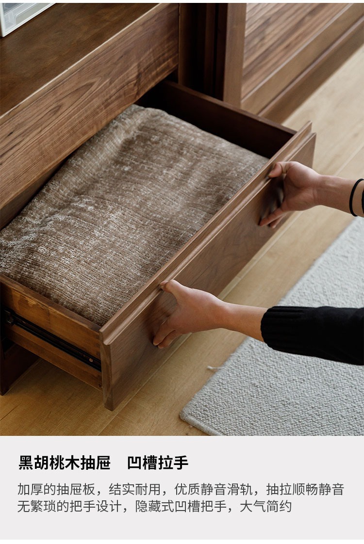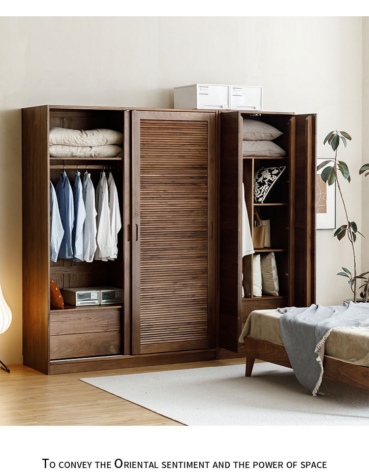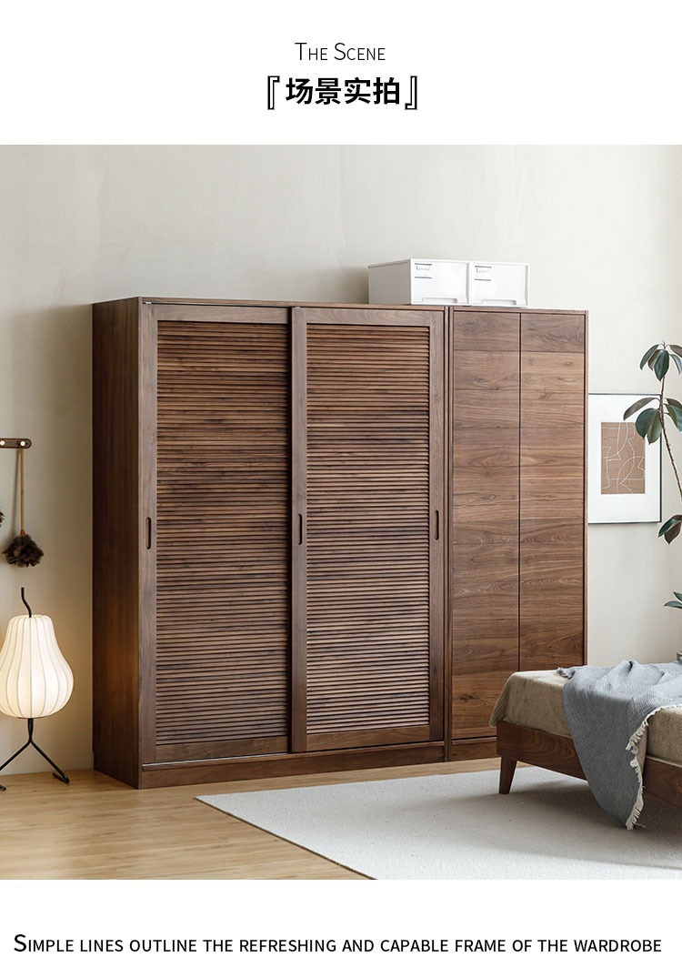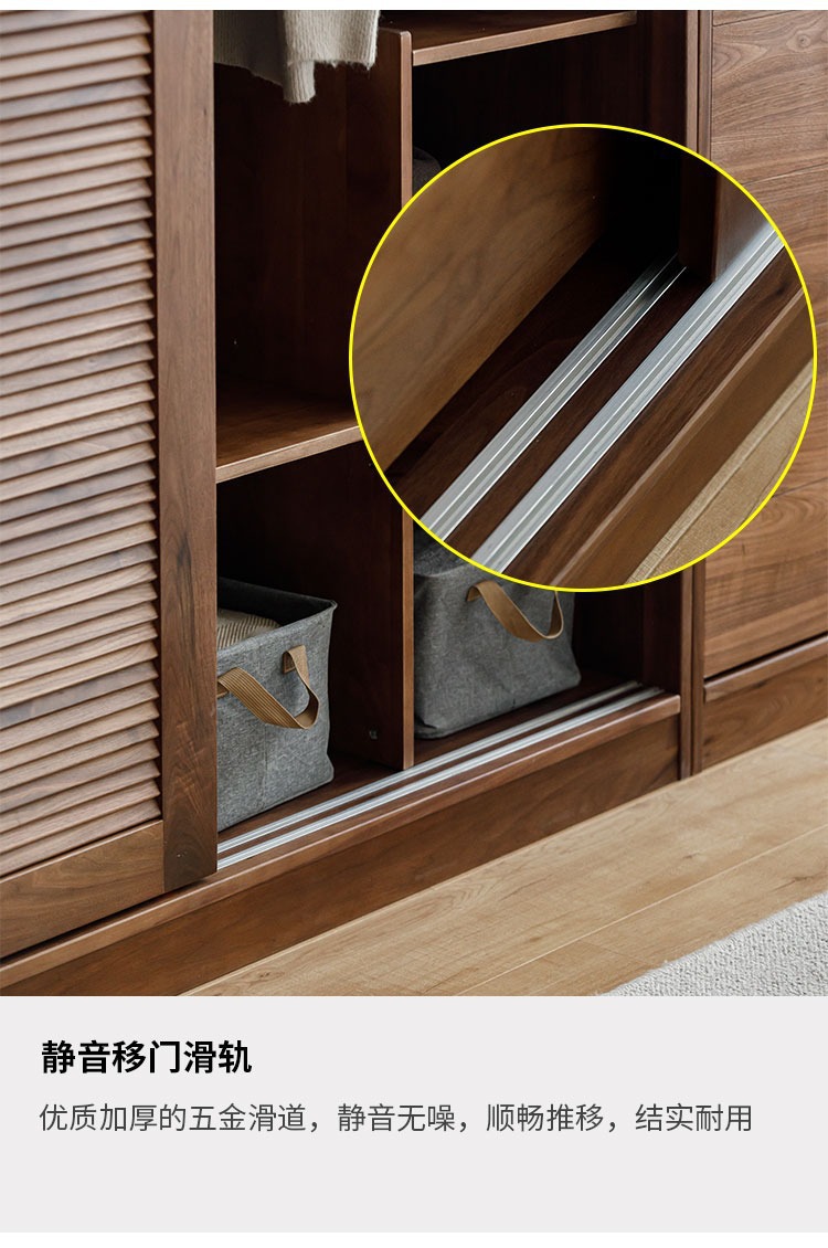 북미 블랙 호두 나무 옷장 셔터 도어 슬라이딩 슬라이딩 도어 바닥 캐비닛 북유럽 간단한 전체 단단한 나무 구름 조합 캐비닛