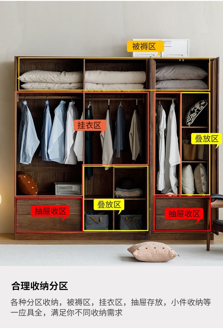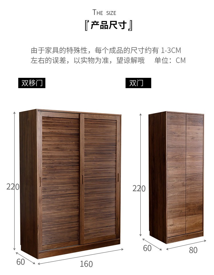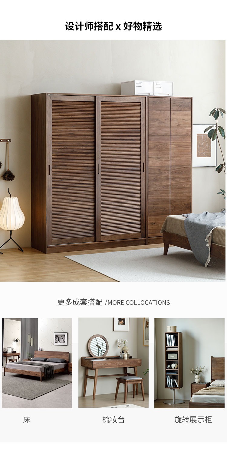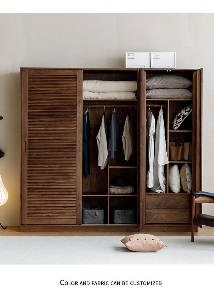 북미 블랙 호두 나무 옷장 셔터 도어 슬라이딩 슬라이딩 도어 바닥 캐비닛 북유럽 간단한 전체 단단한 나무 구름 조합 캐비닛