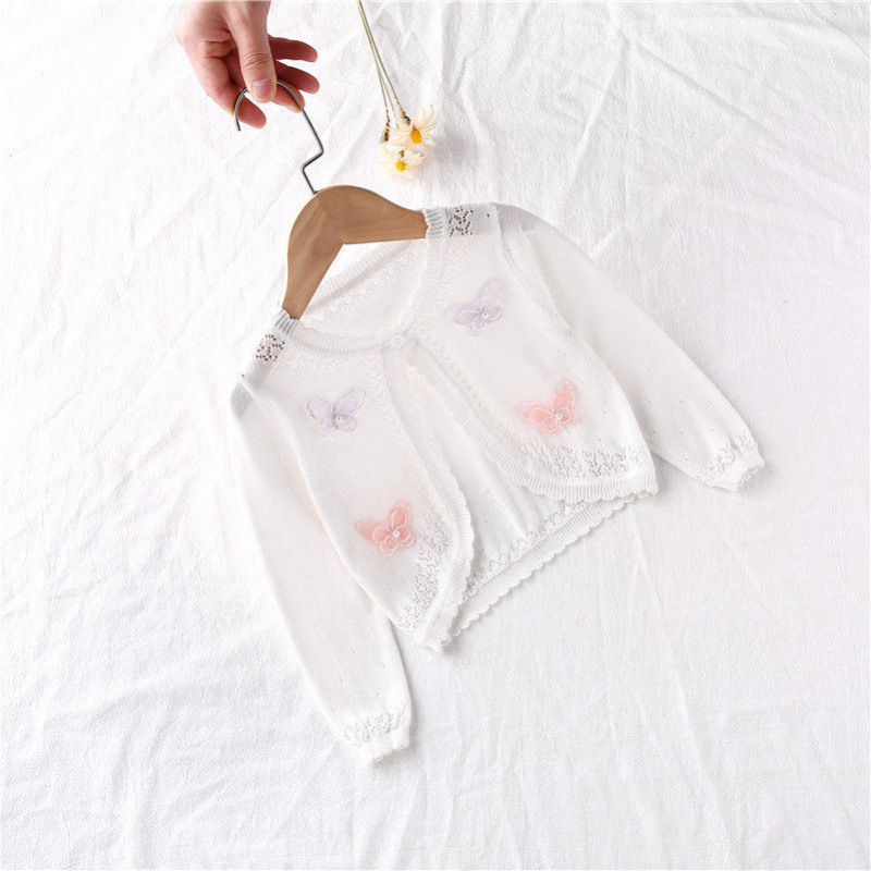소녀의 얇은 작은 와퍼 여름 아기의 니트 코트 아기의 선 스크린 작은 목도리 어린 소녀의 중공 에어컨 셔츠스토어 가기