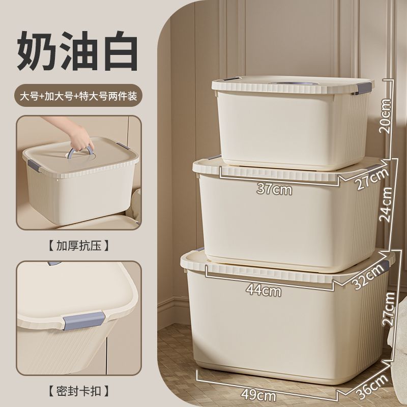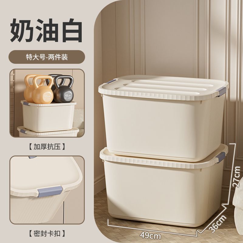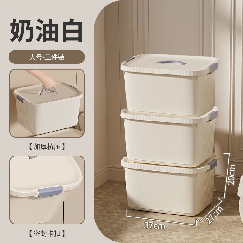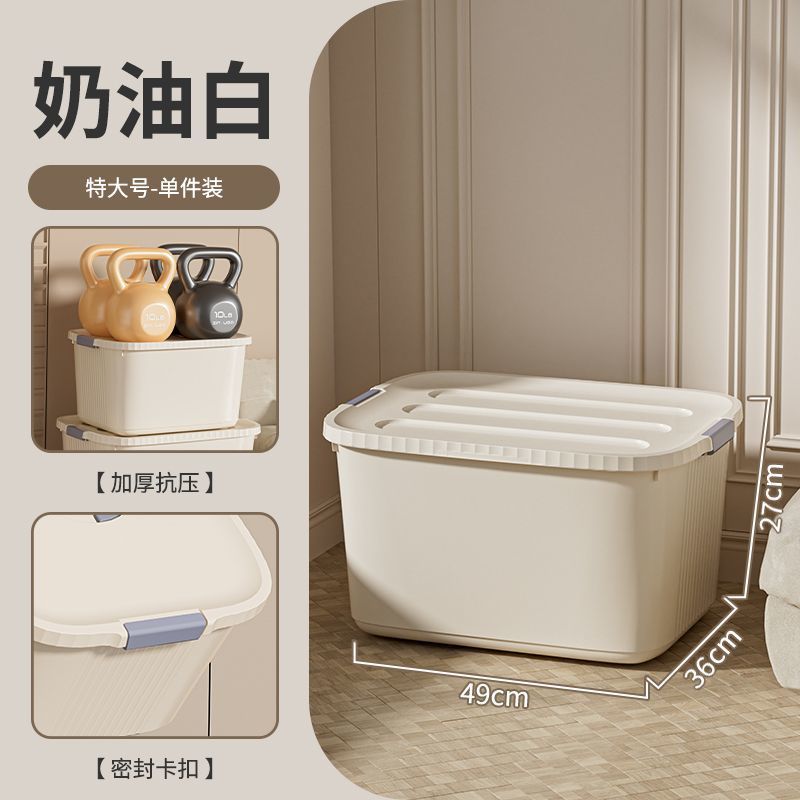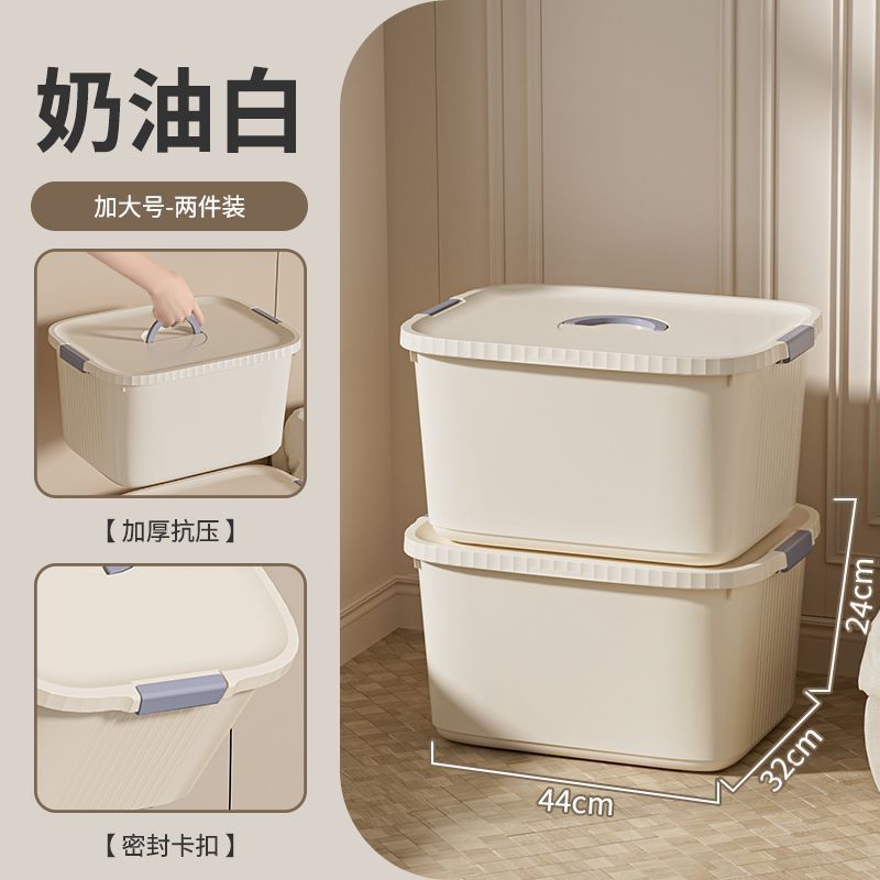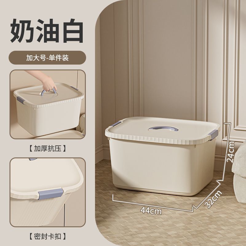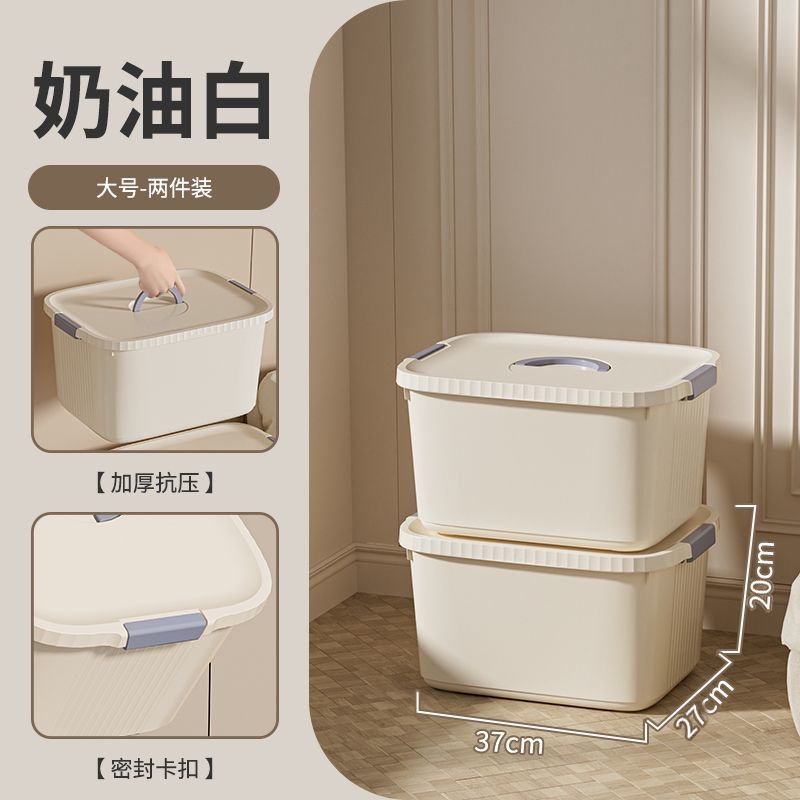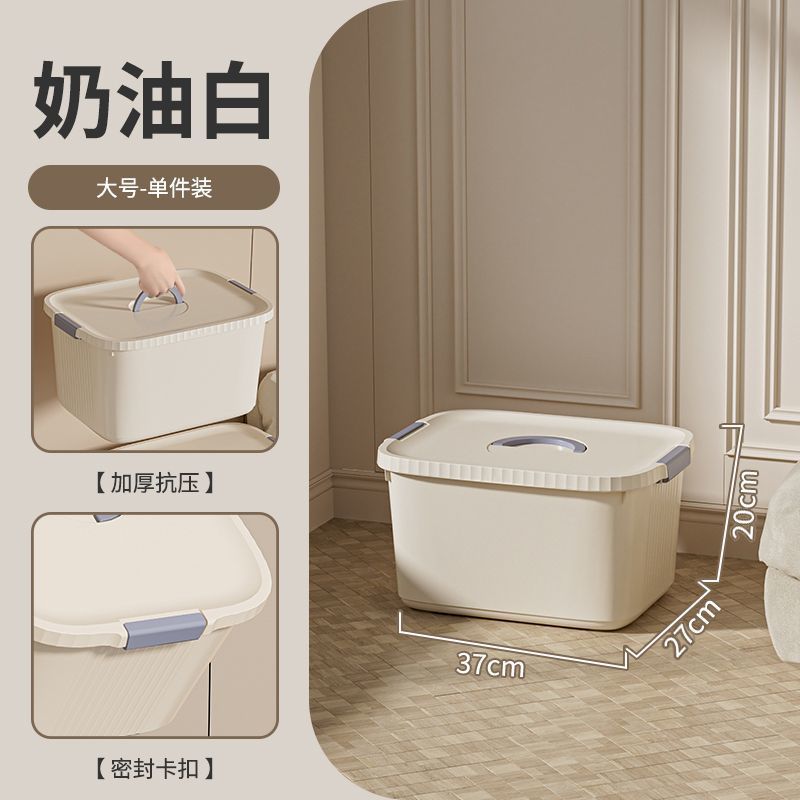 저장 상자 대형 가정용 상자 크림 색 저장 상자 다기능 대용량 간식 의류 잡화 플라스틱 플립 커버