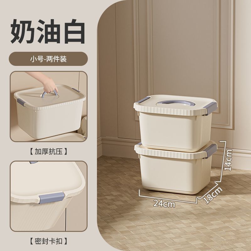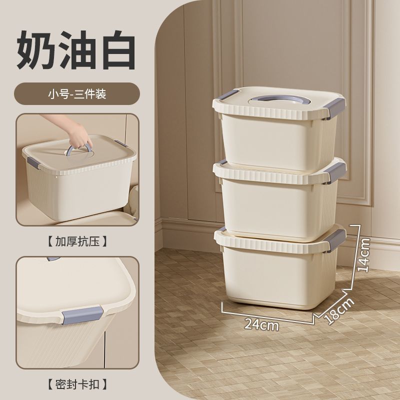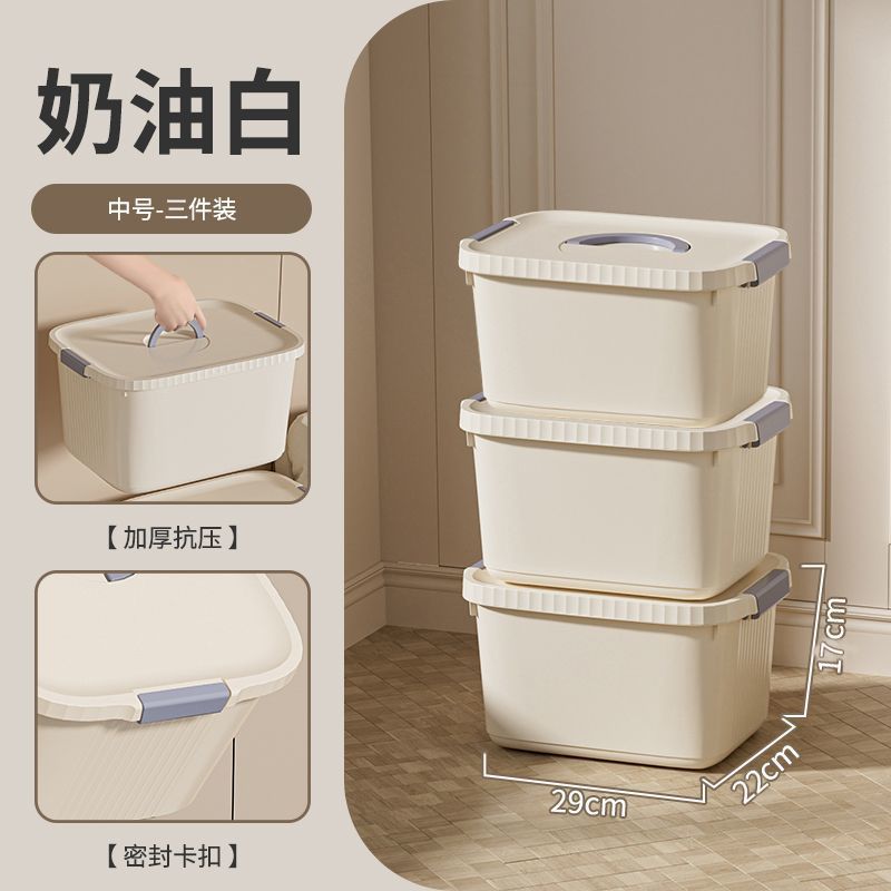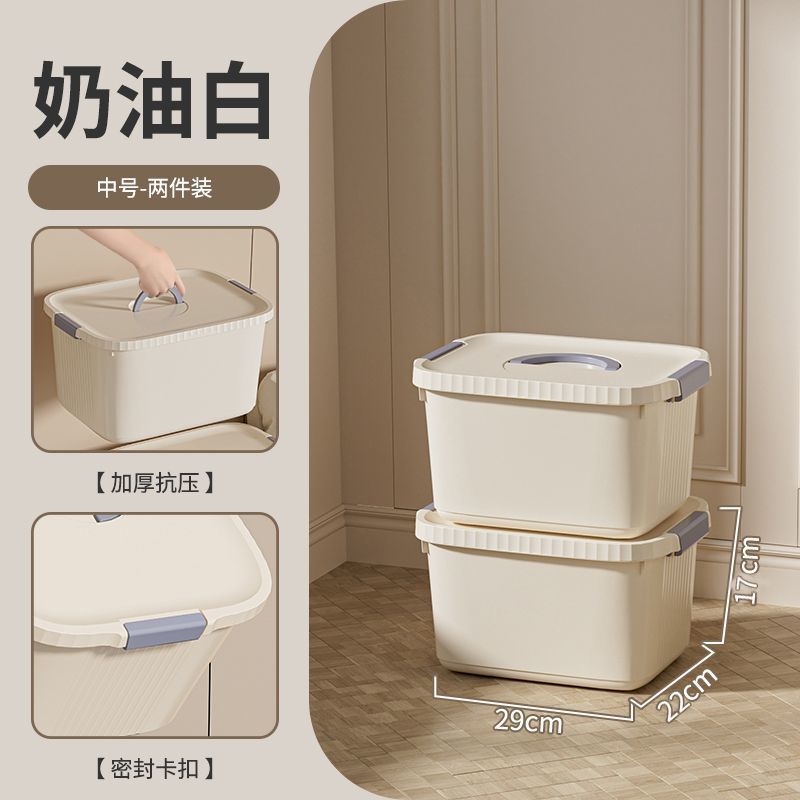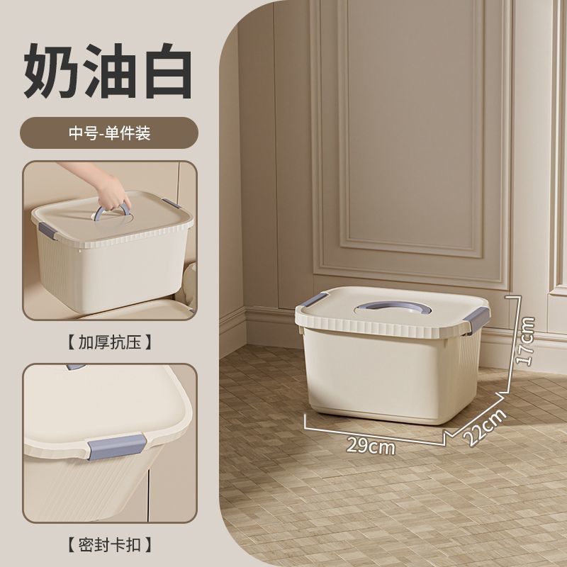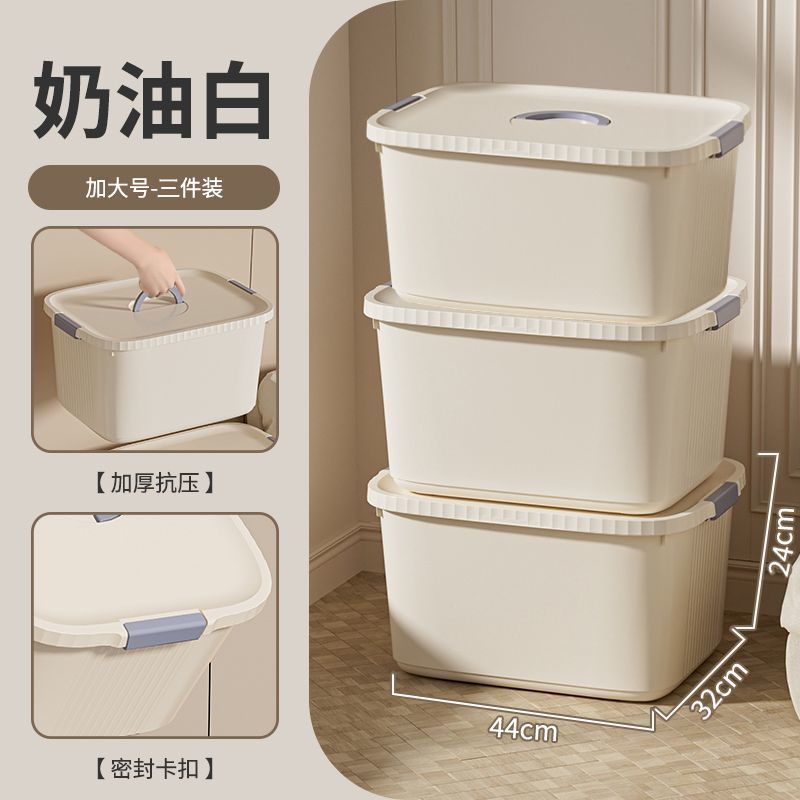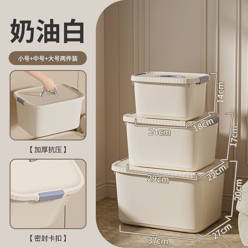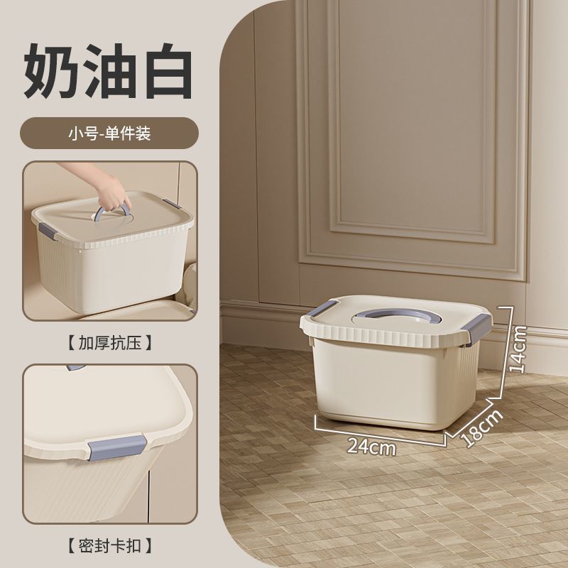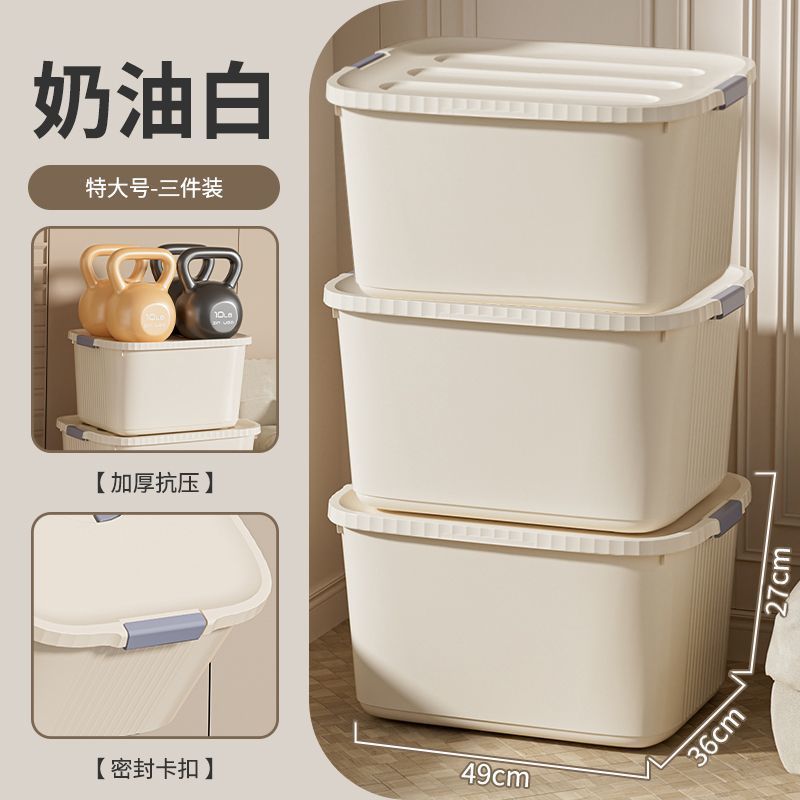 저장 상자 대형 가정용 상자 크림 색 저장 상자 다기능 대용량 간식 의류 잡화 플라스틱 플립 커버