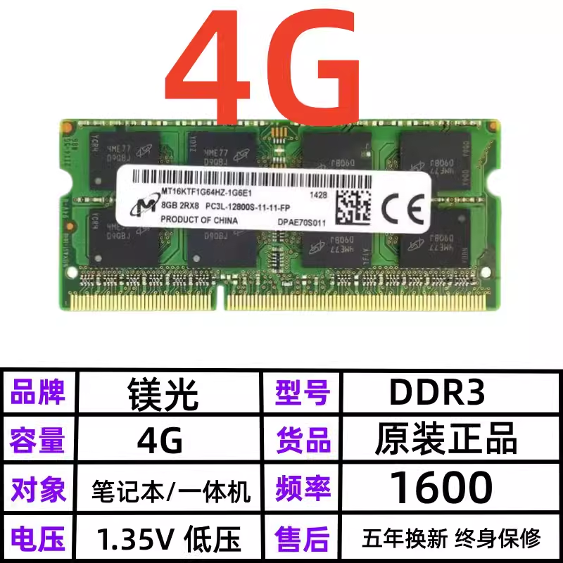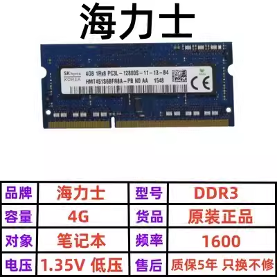 노트북 메모리 모듈 DDR3 4G 8G 1600 PC3L 1.35V 12800 완벽하게 호환되는 단일