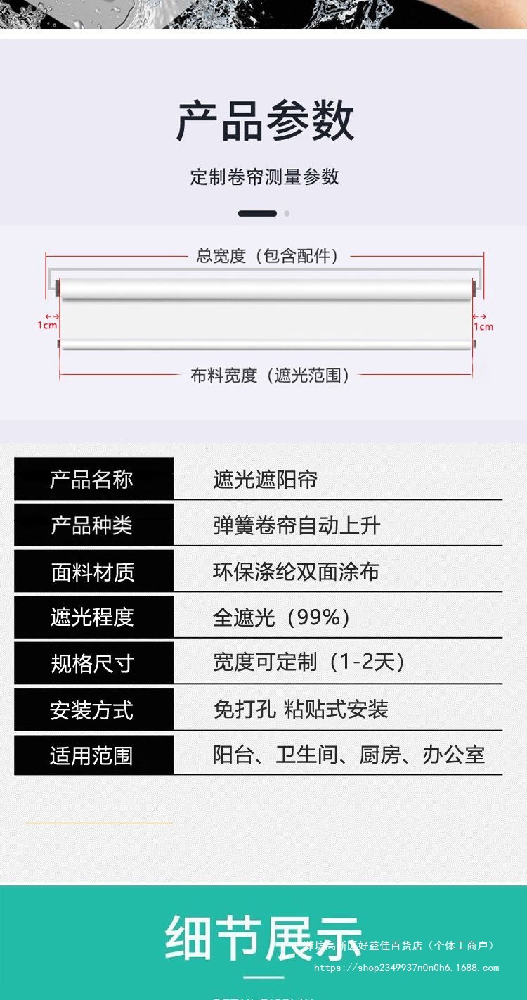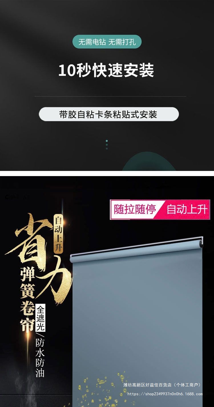자동 상승 비 천공 붙여 넣기 전체 음영 욕실 연구 주방 발코니 차양 커튼 롤업 개폐식스토어 가기
