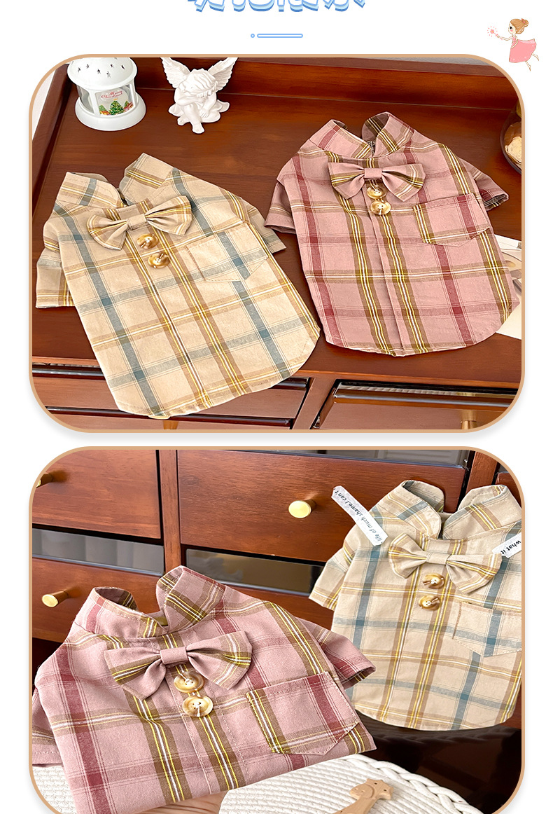 통기성 가정 야외 개 옷 도매 재고 국경 간 새로운 애완 동물 개 옷 체크 무늬 셔츠