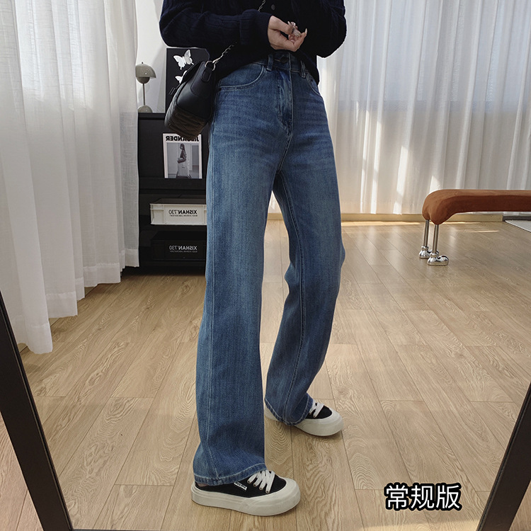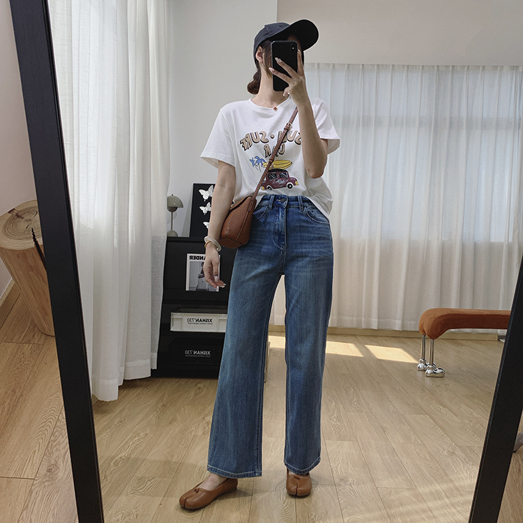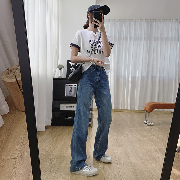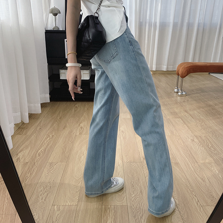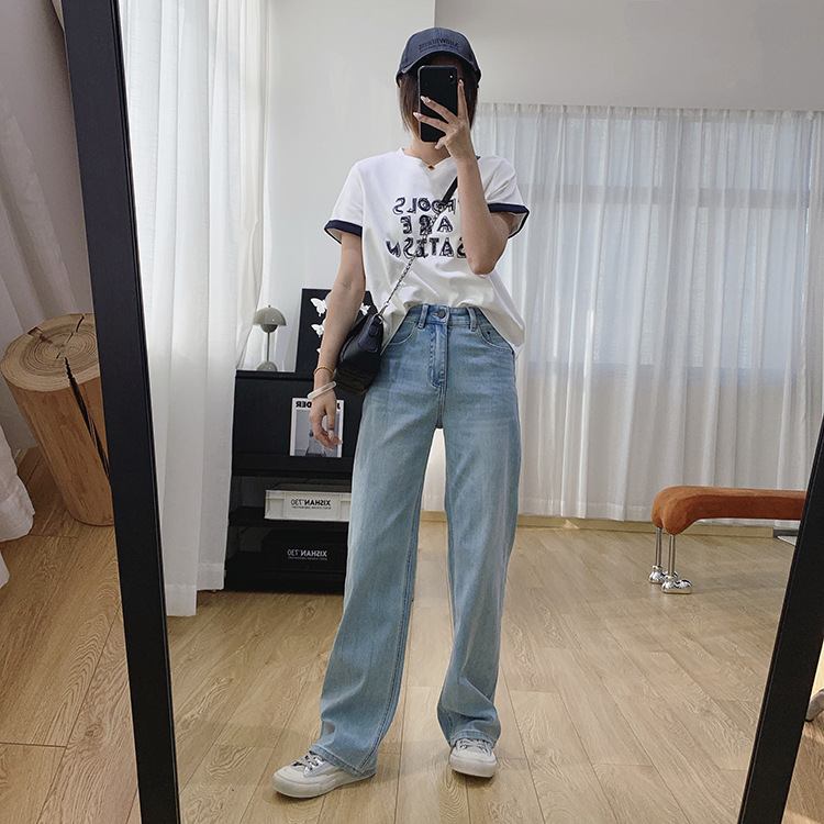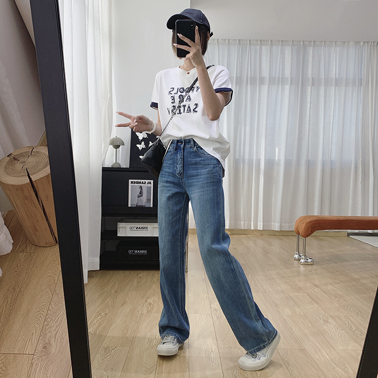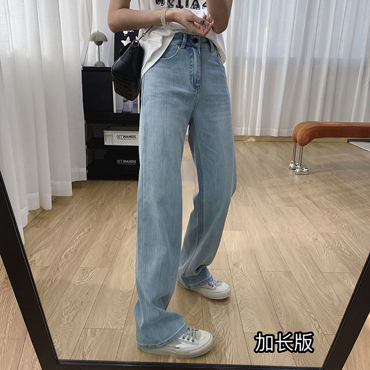 하이 퀄리티 아세테이트 텐셀 높은 허리 슬리밍 좁은 넓은 다리 바지 여성용 봄 바지 느슨한 직선 청바지 봄과 가을스토어 가기