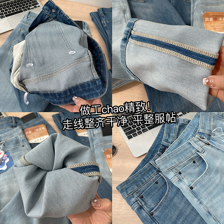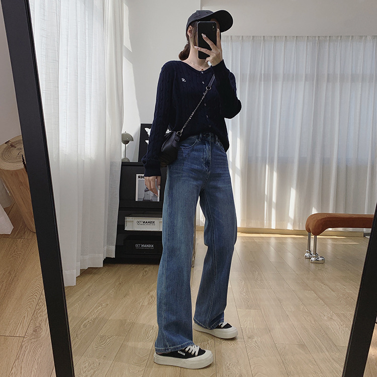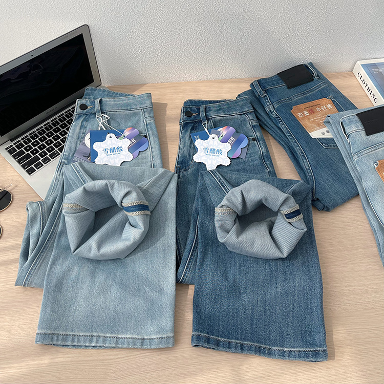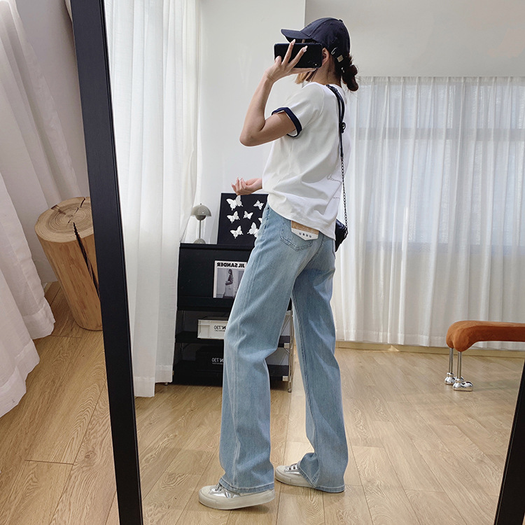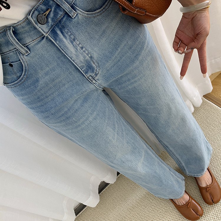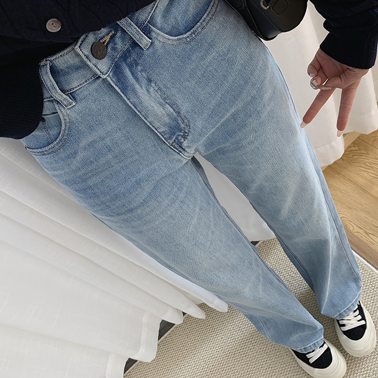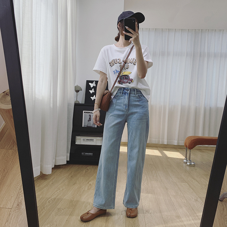 하이 퀄리티 아세테이트 텐셀 높은 허리 슬리밍 좁은 넓은 다리 바지 여성용 봄 바지 느슨한 직선 청바지 봄과 가을스토어 가기