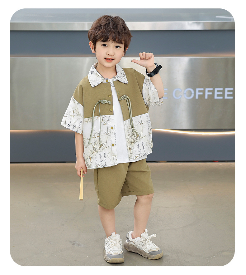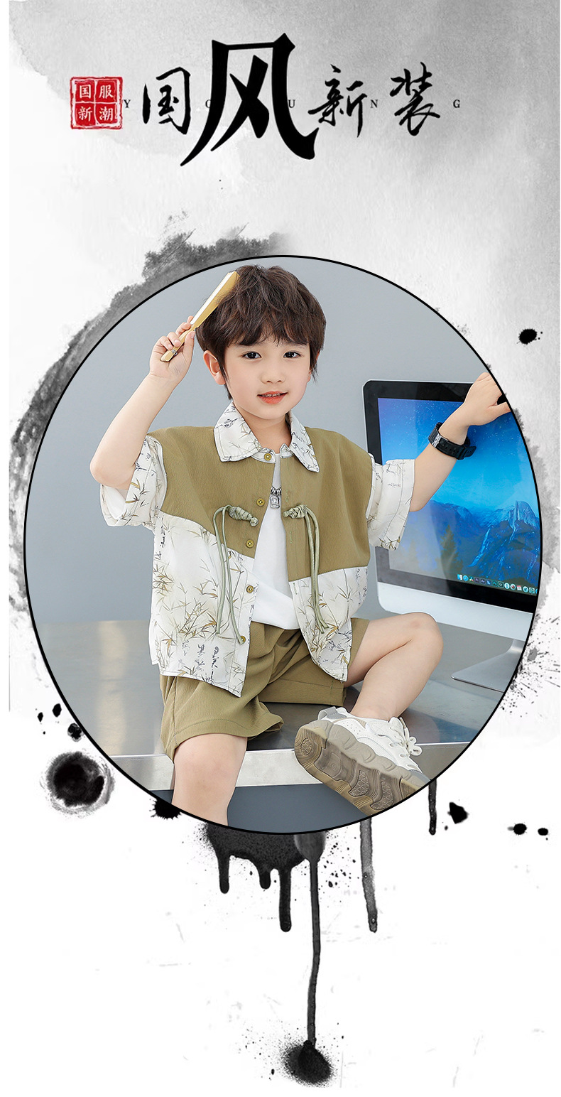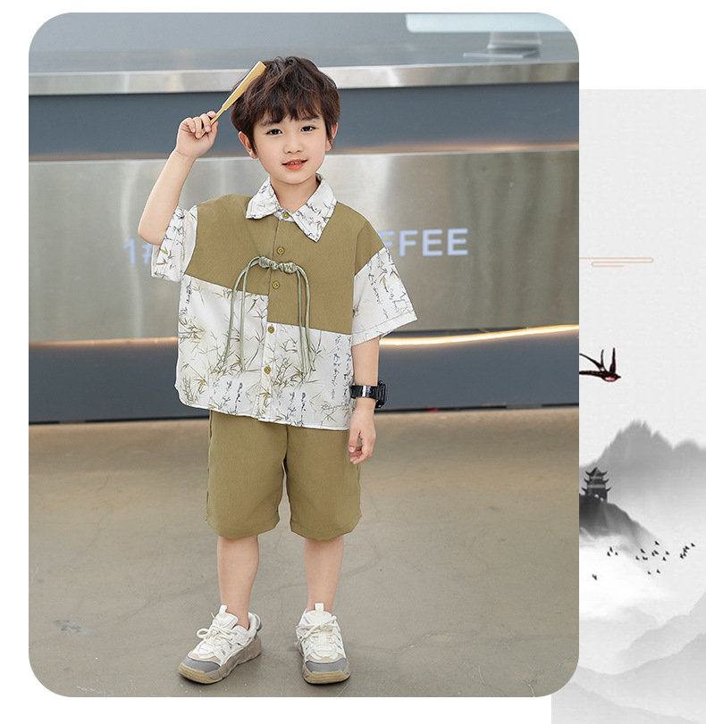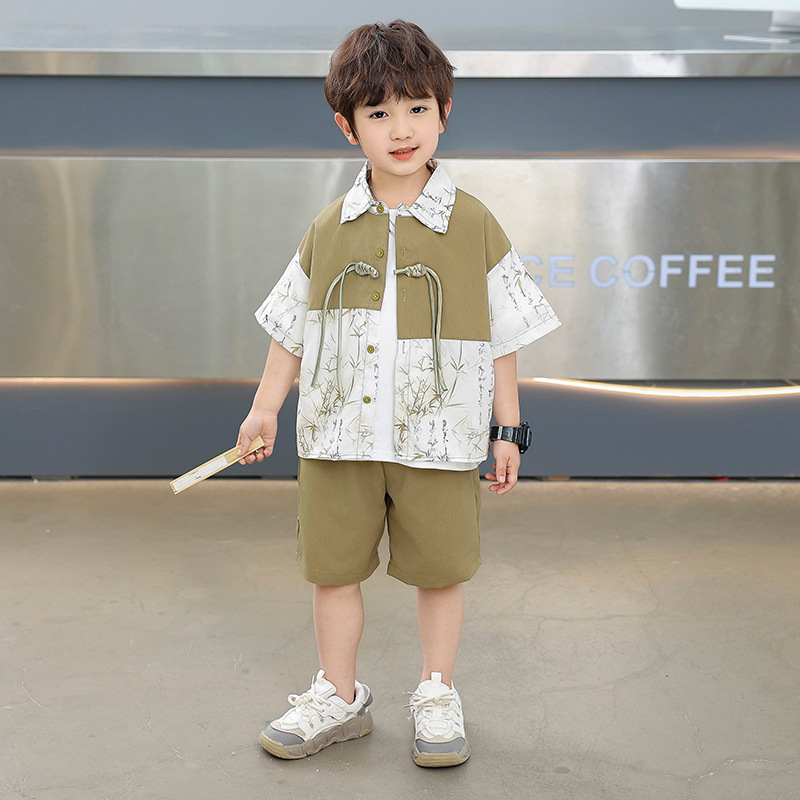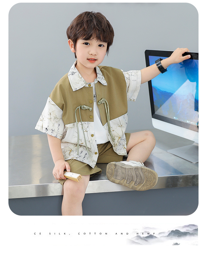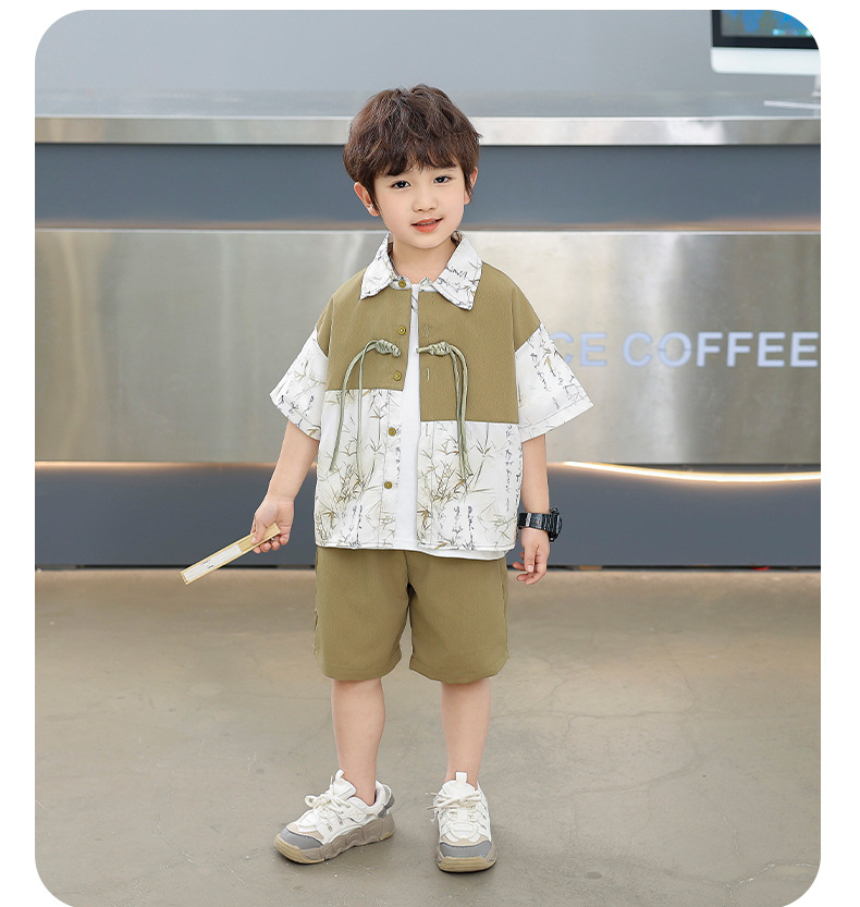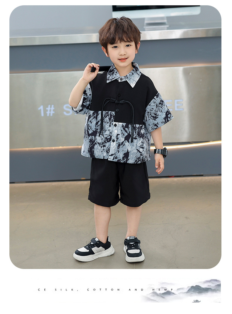 어린이 착용 소년 여름 착용 세트 2025 새로운 여름 새로운 중국 스타일 잘 생긴 아기 옷 어린이 국가 스타일 한푸 패션스토어 가기