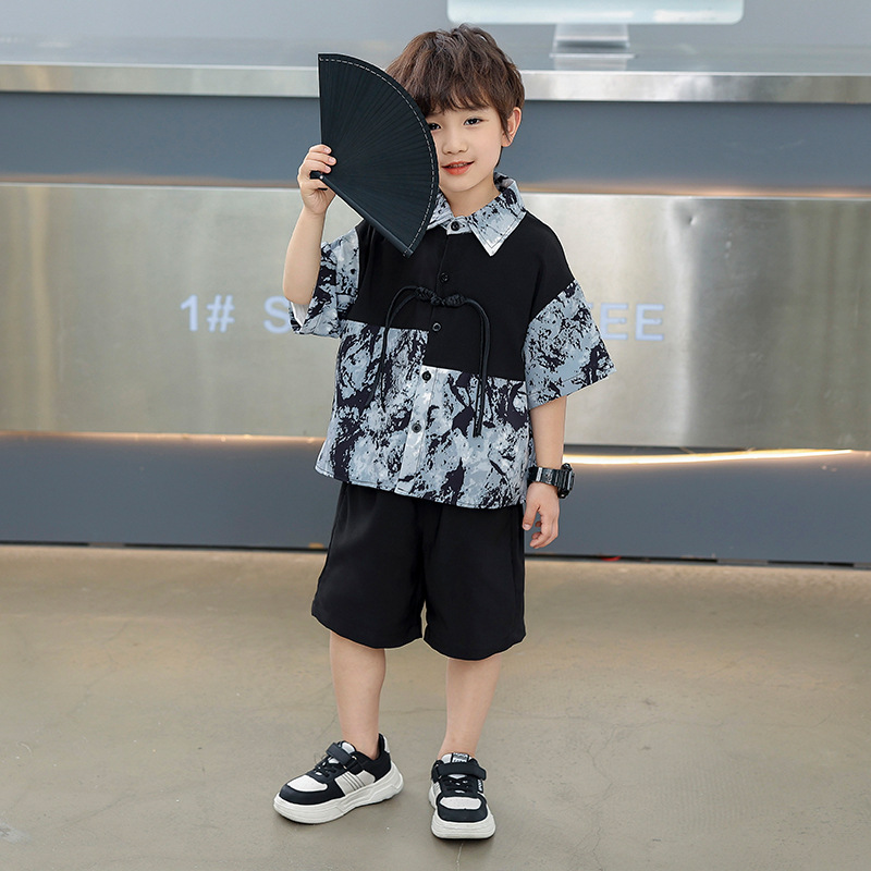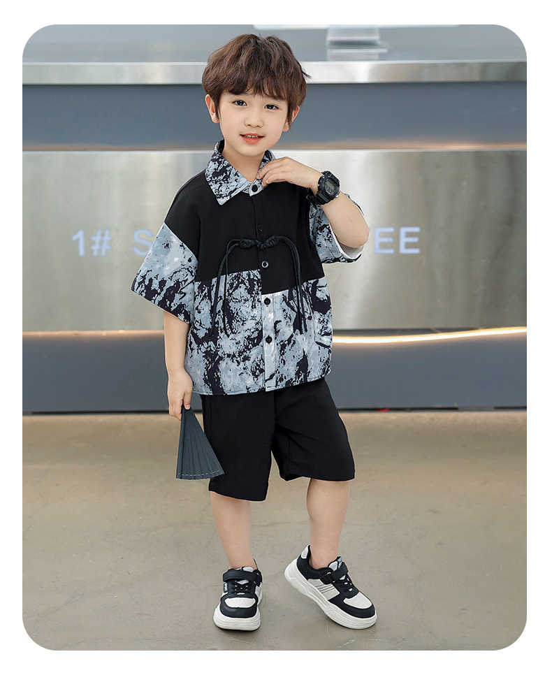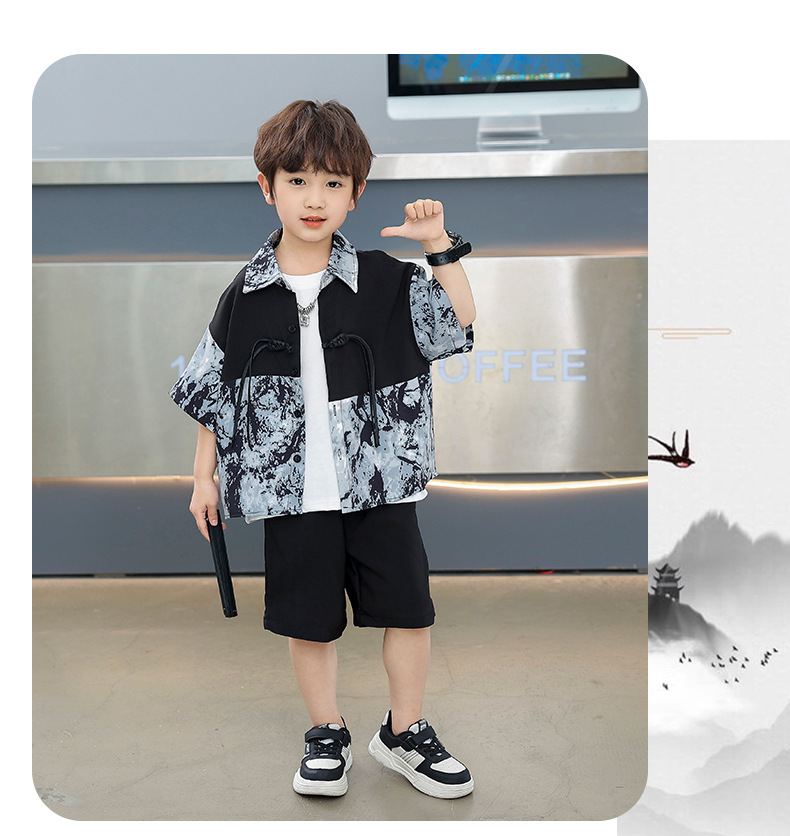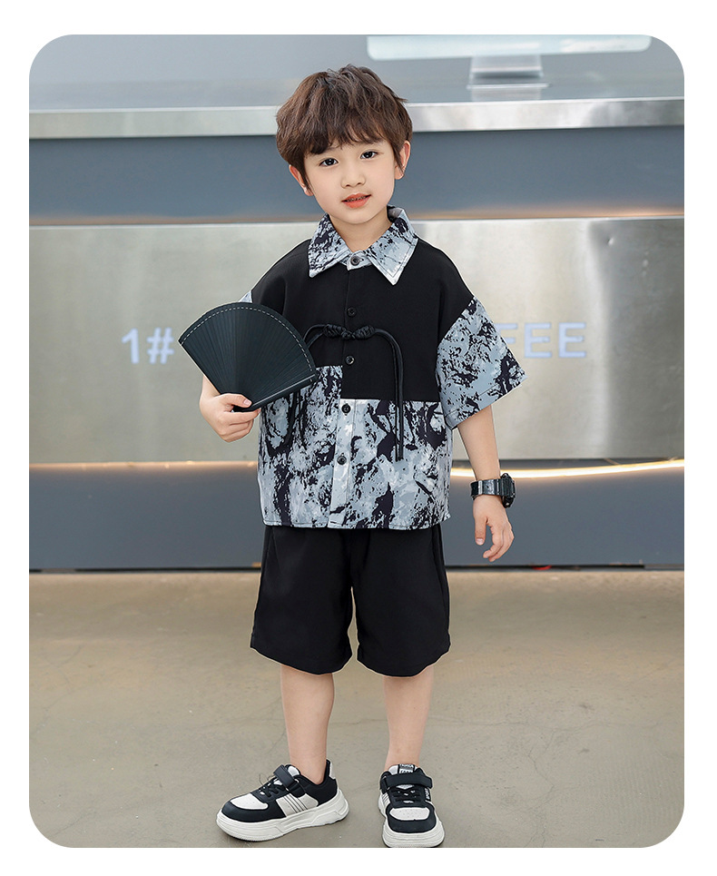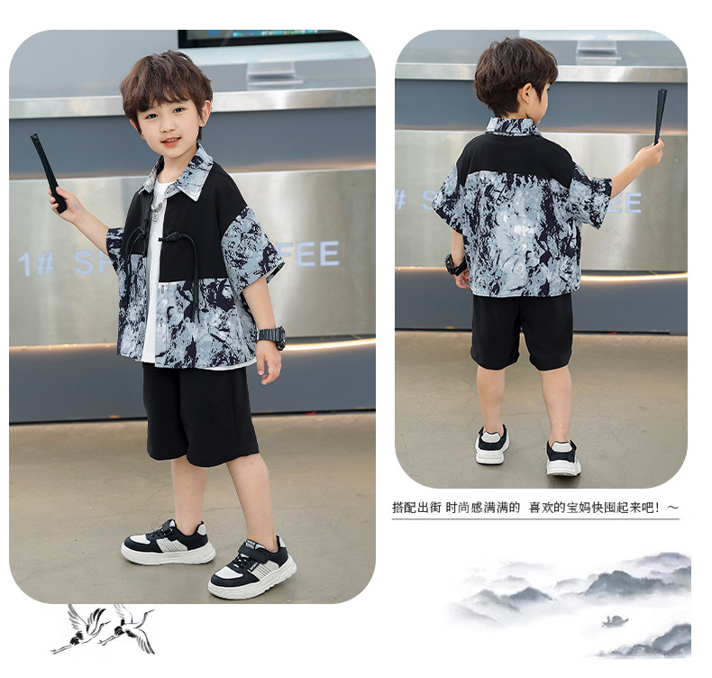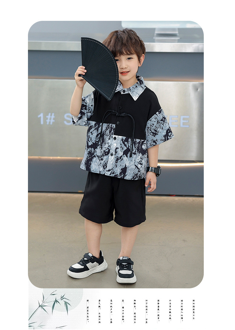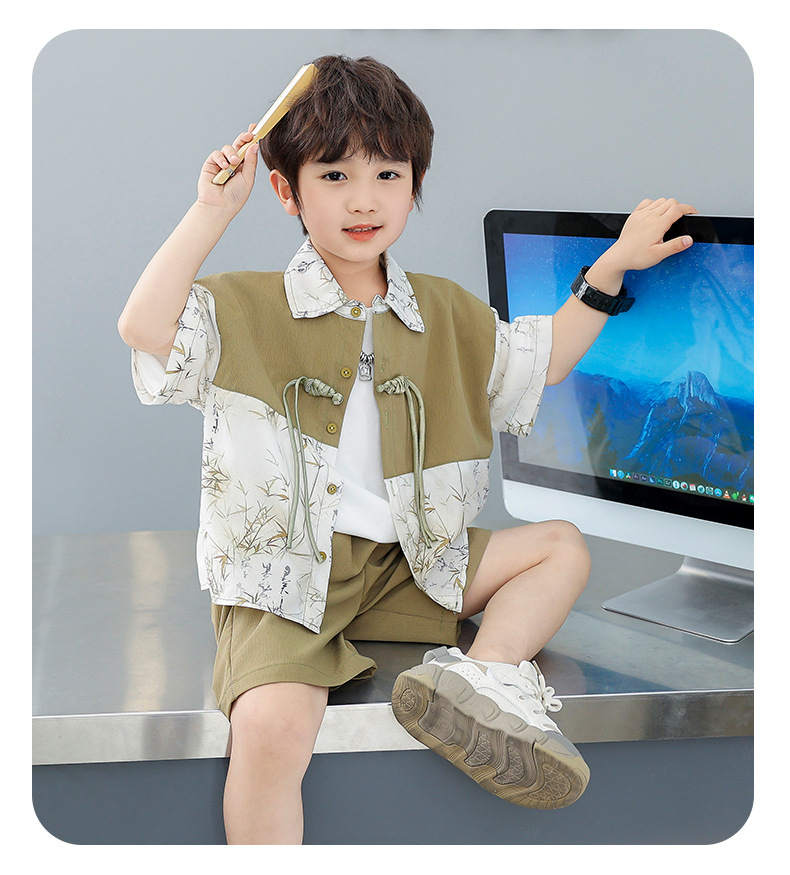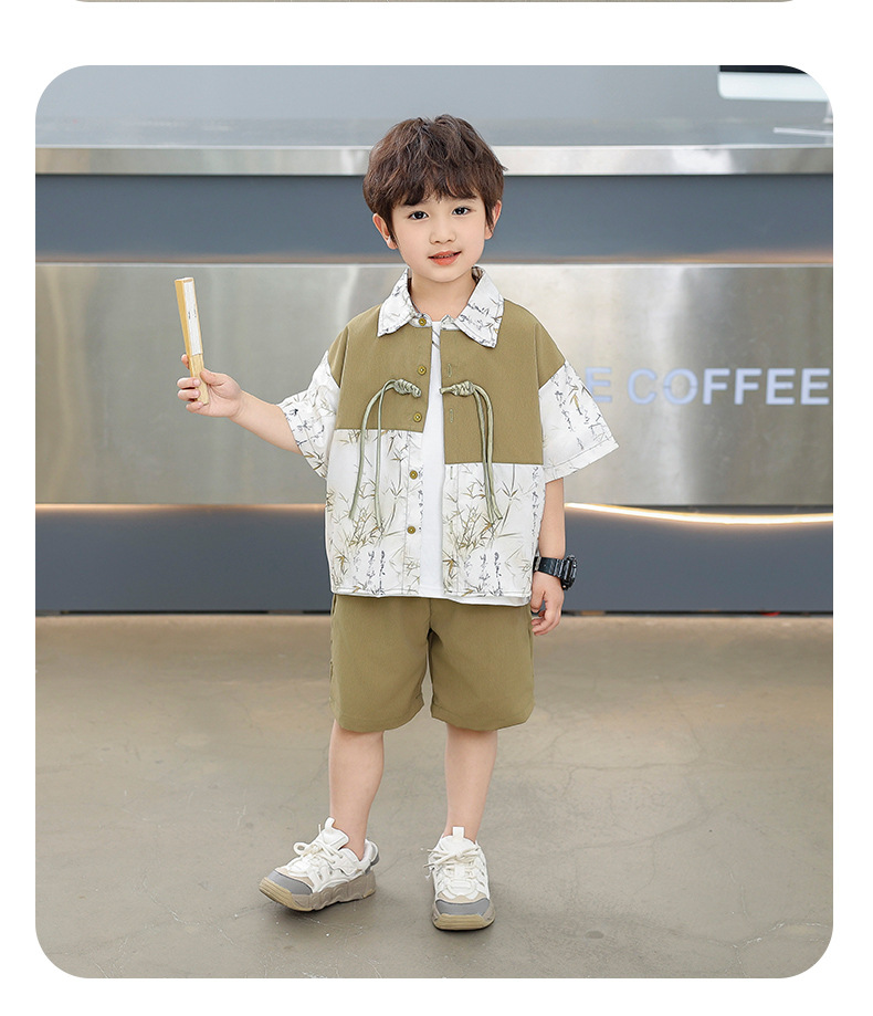 어린이 착용 소년 여름 착용 세트 2025 새로운 여름 새로운 중국 스타일 잘 생긴 아기 옷 어린이 국가 스타일 한푸 패션스토어 가기