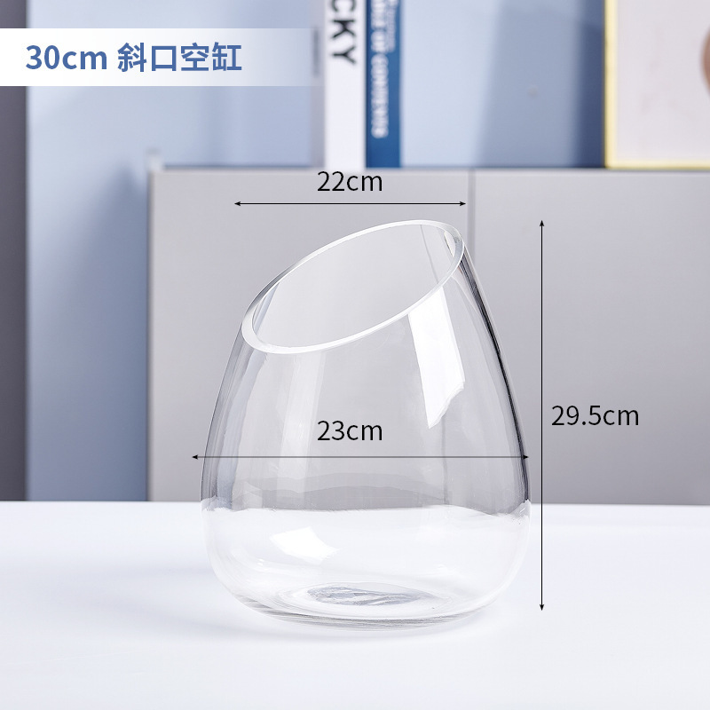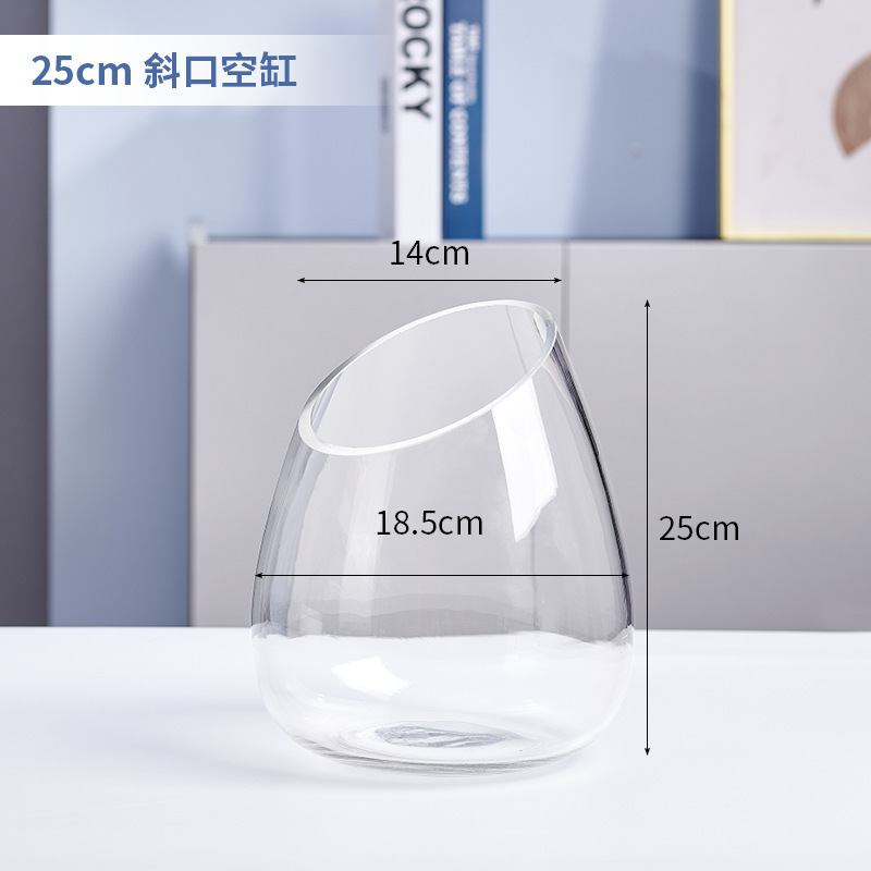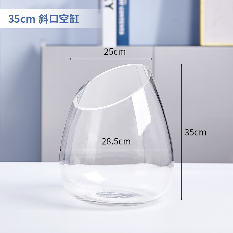 유리 수경 식물 꽃병 투명 비스듬한 입 물고기 탱크 비스듬한 입 녹색 장미 수경 화분 수경 도자기 수족관
