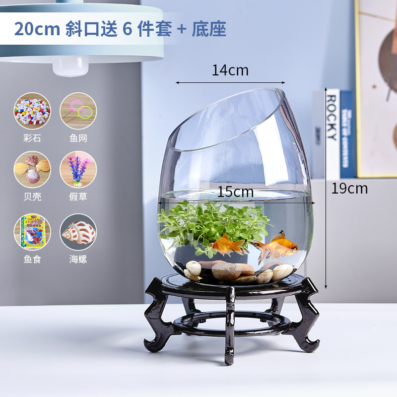 유리 수경 식물 꽃병 투명 비스듬한 입 물고기 탱크 비스듬한 입 녹색 장미 수경 화분 수경 도자기 수족관스토어 가기