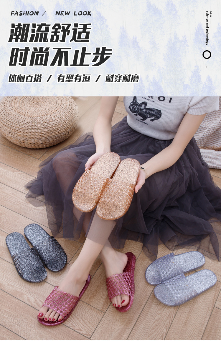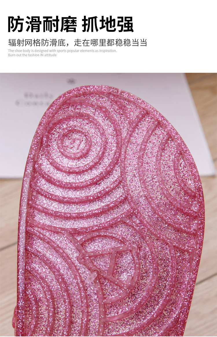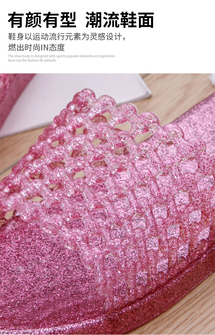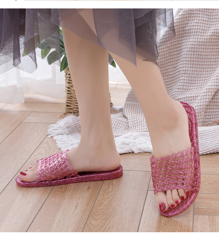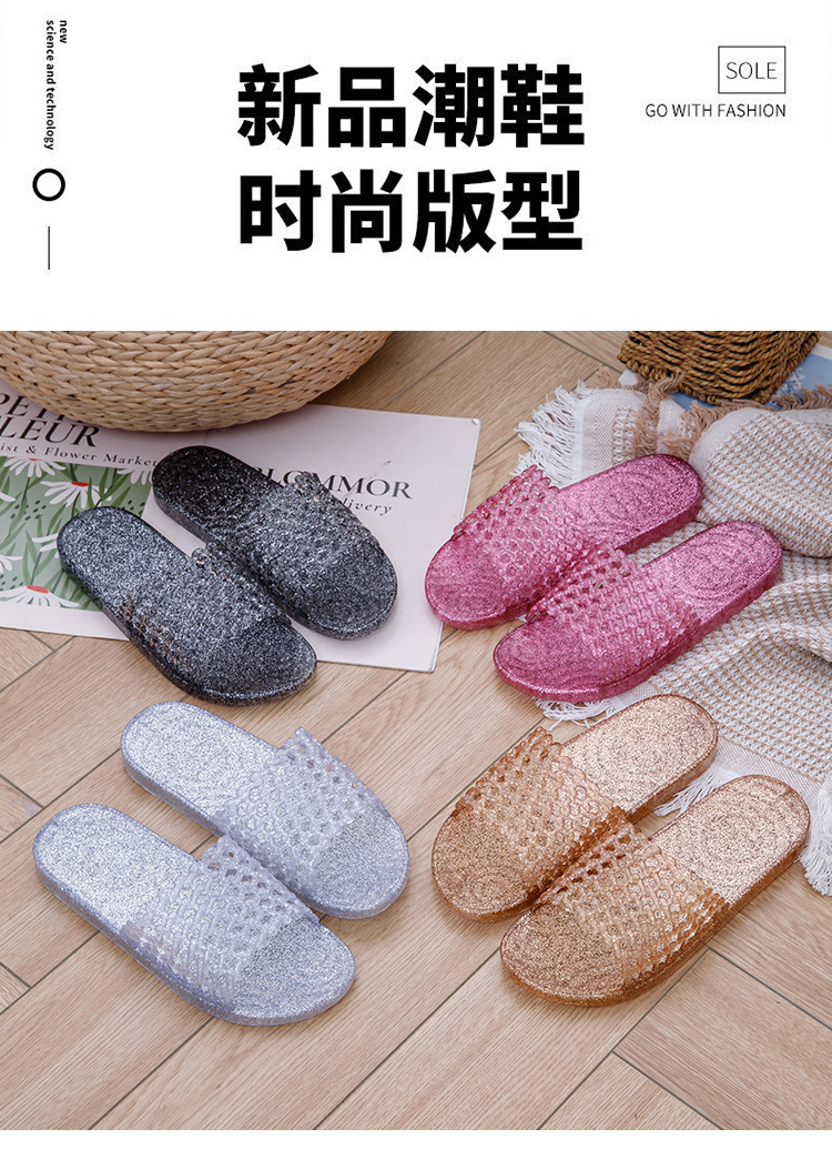 크리스탈 요리 접착제 슬리퍼 욕실 화장실 홈 미끄럼 방지 슬리퍼 여성용 여름 외부 투명 플랫 비 연소 발 착용