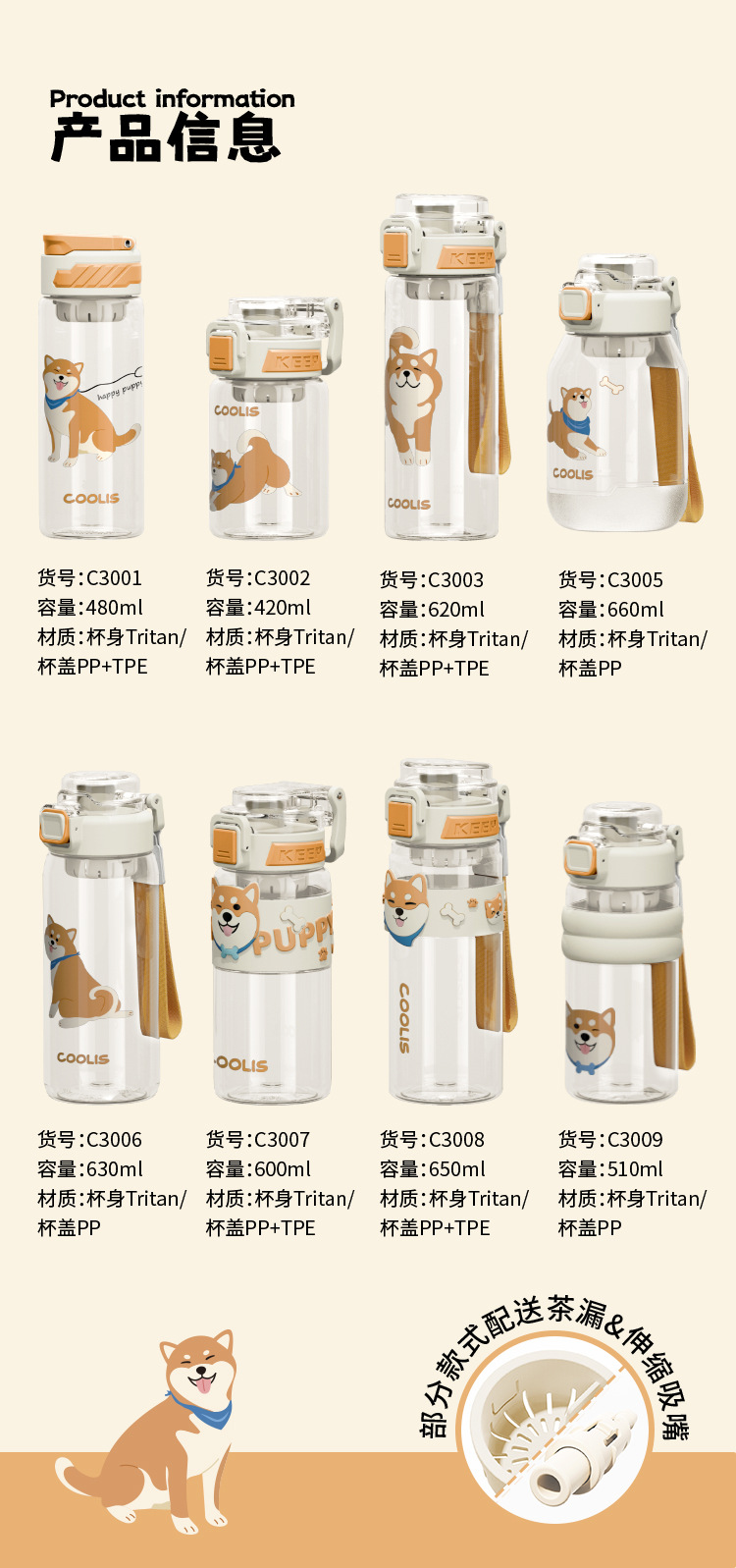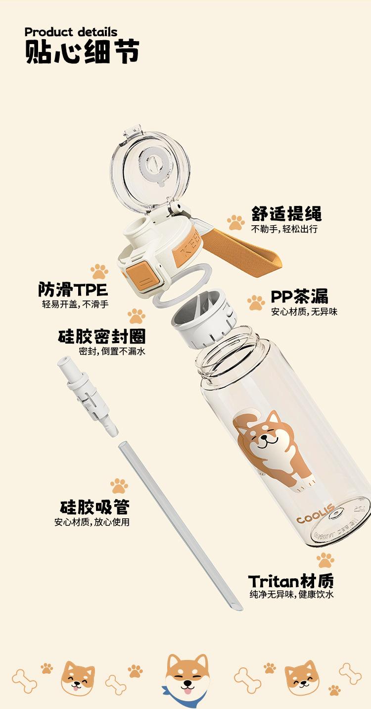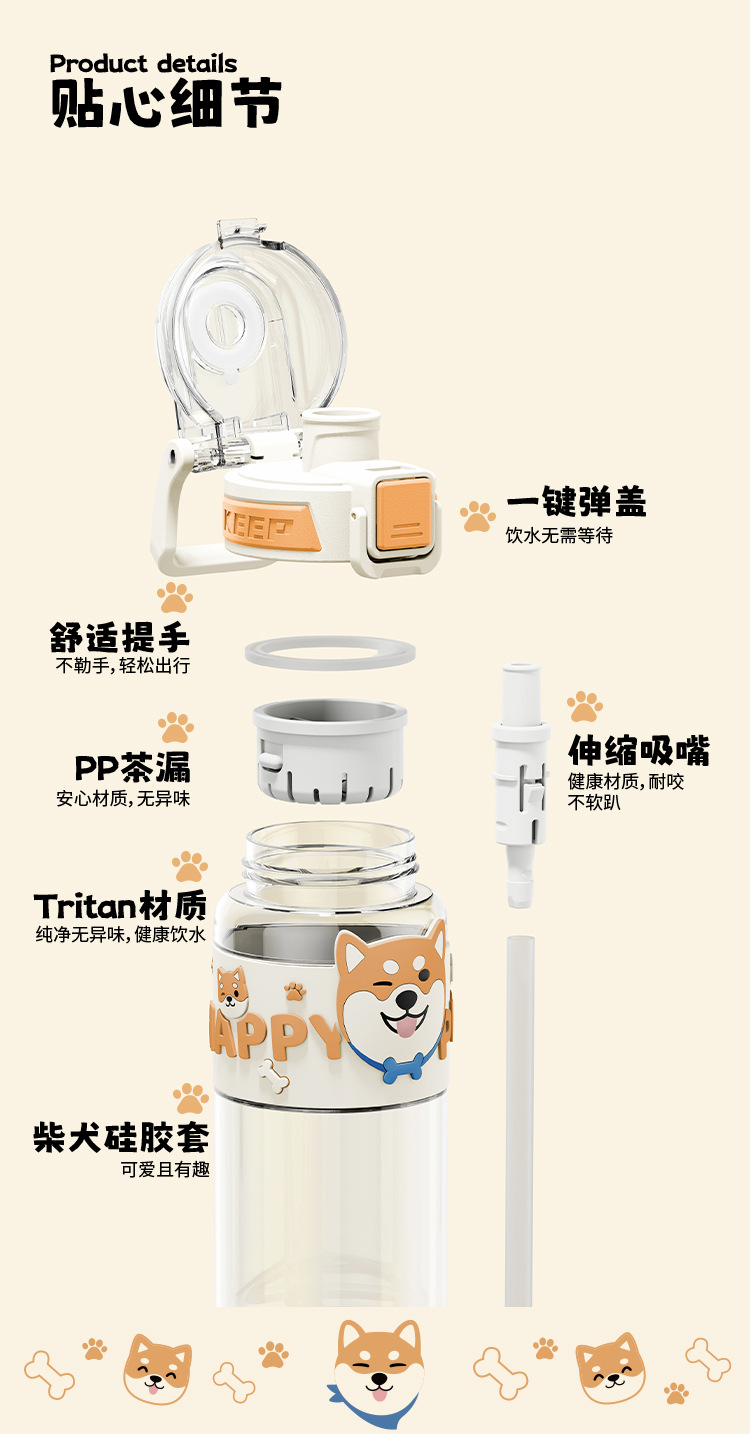 • 650ml 시바견 시리즈-3008 빨대