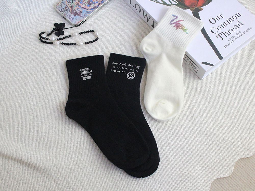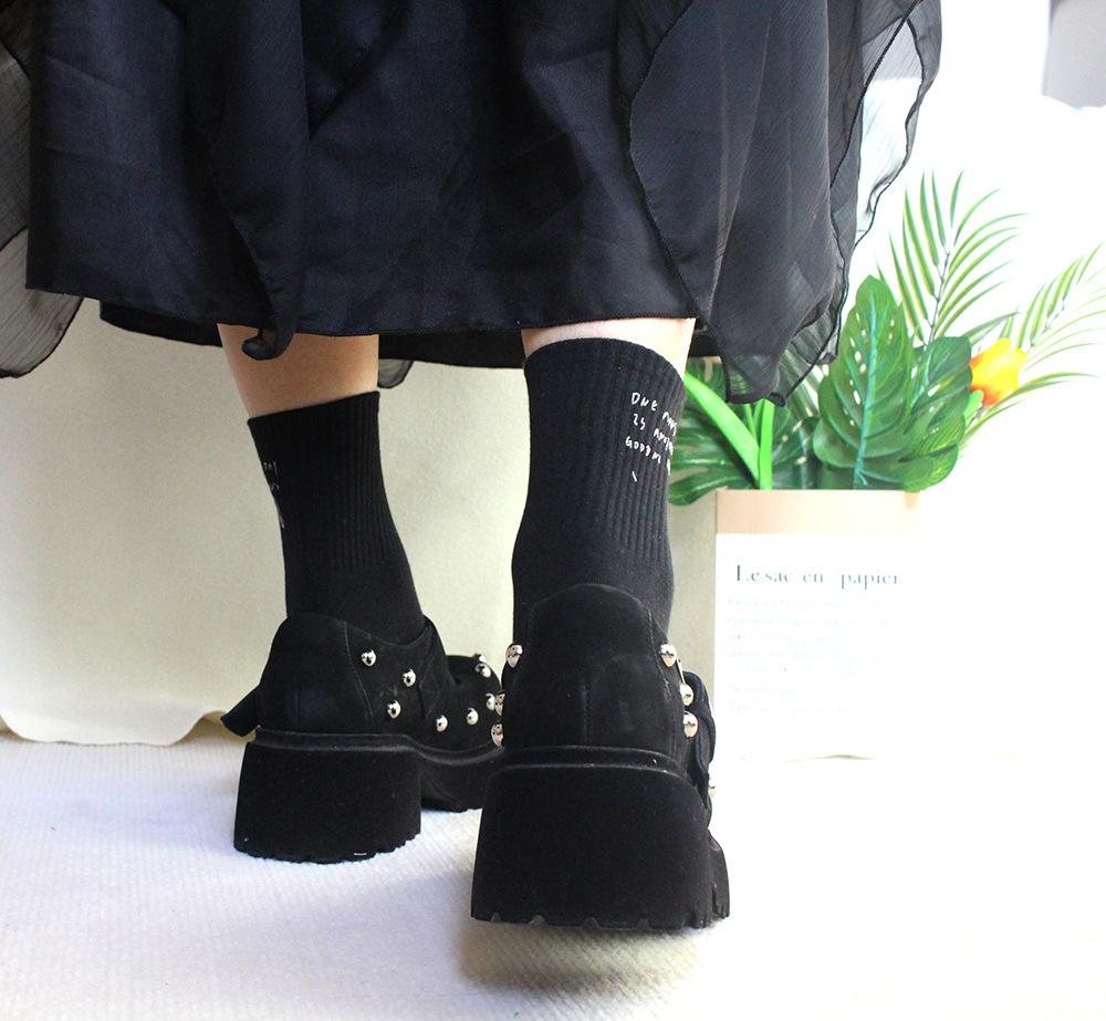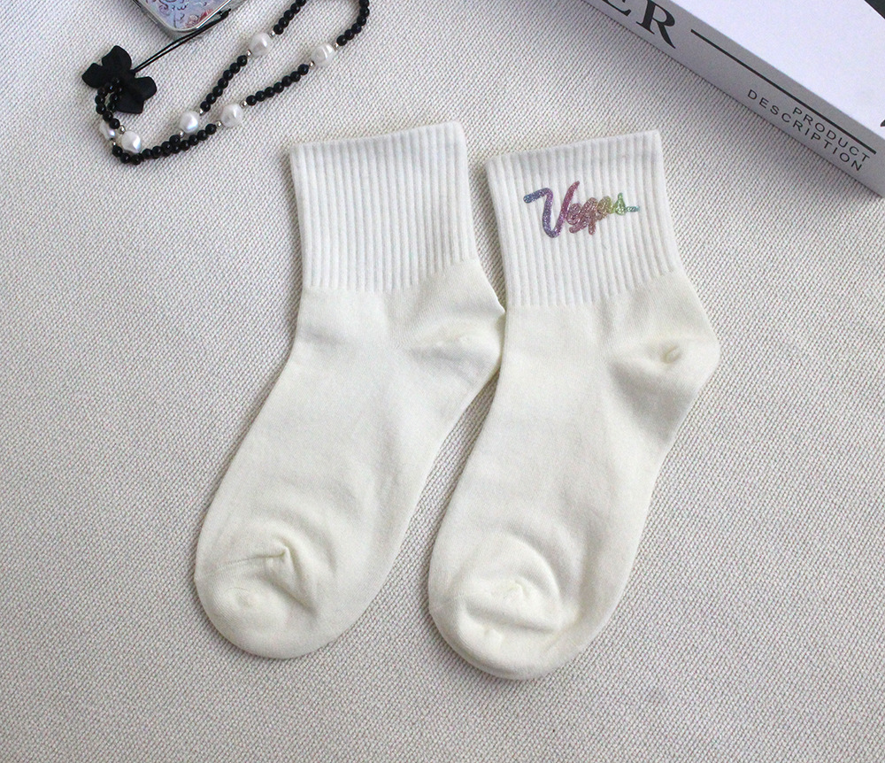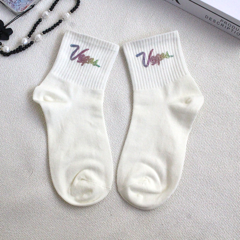 새로운 유럽 제품 핫 스탬핑 실버 핫 드릴링 스퀸 중공업 쥬얼리 양말 스택 양말 인스타그램 세련된 맞춤형 미드 양말 트렌디 코튼스토어 가기
