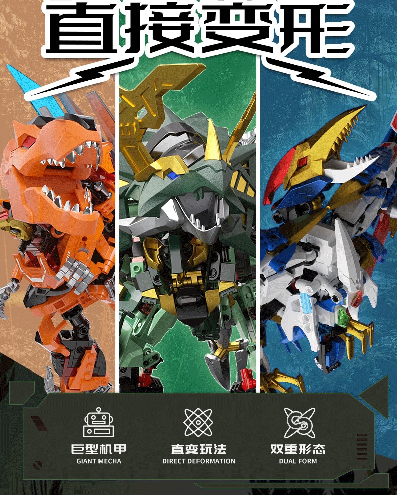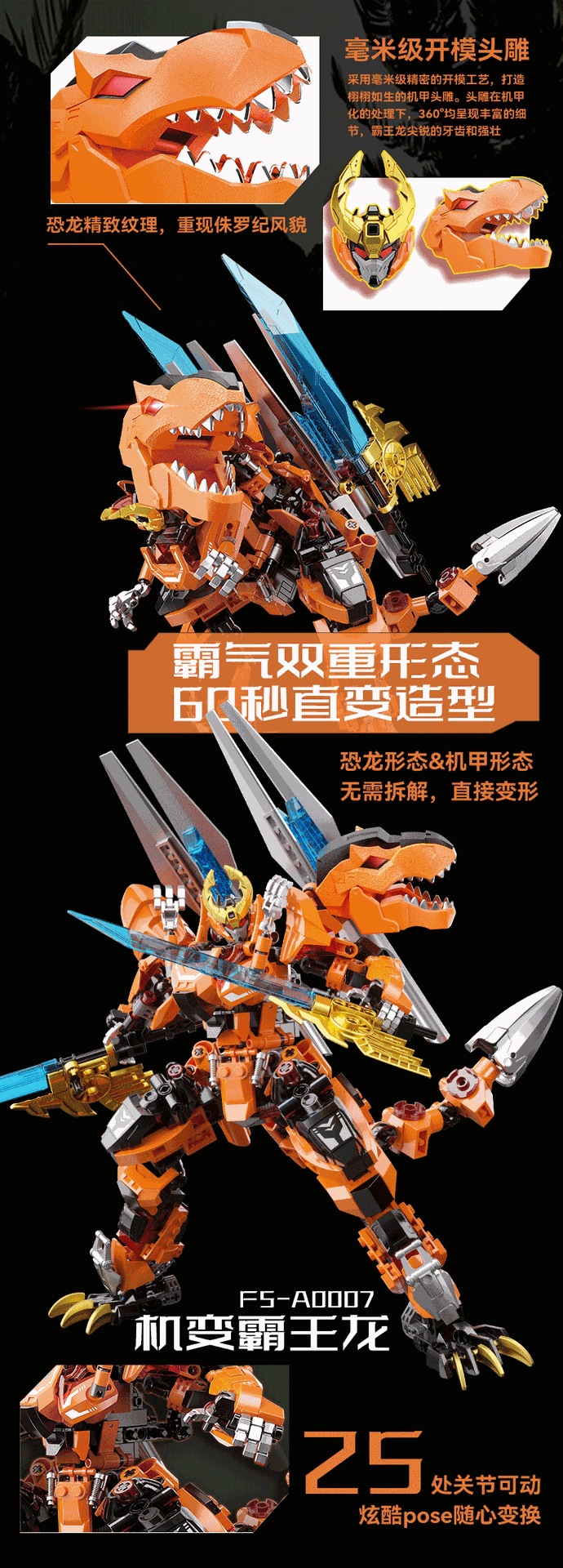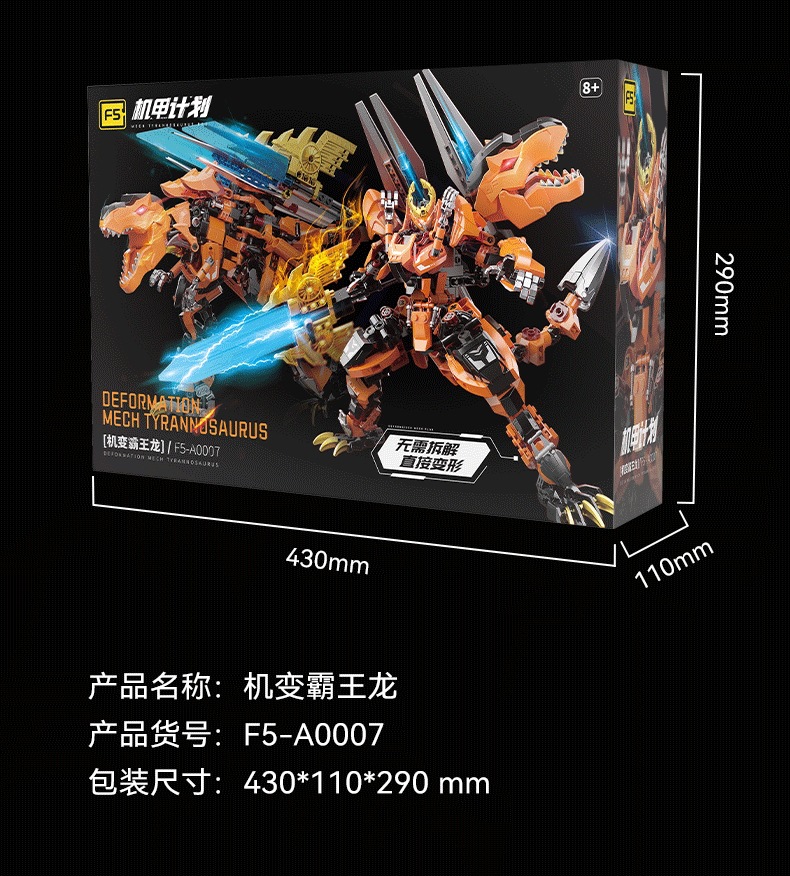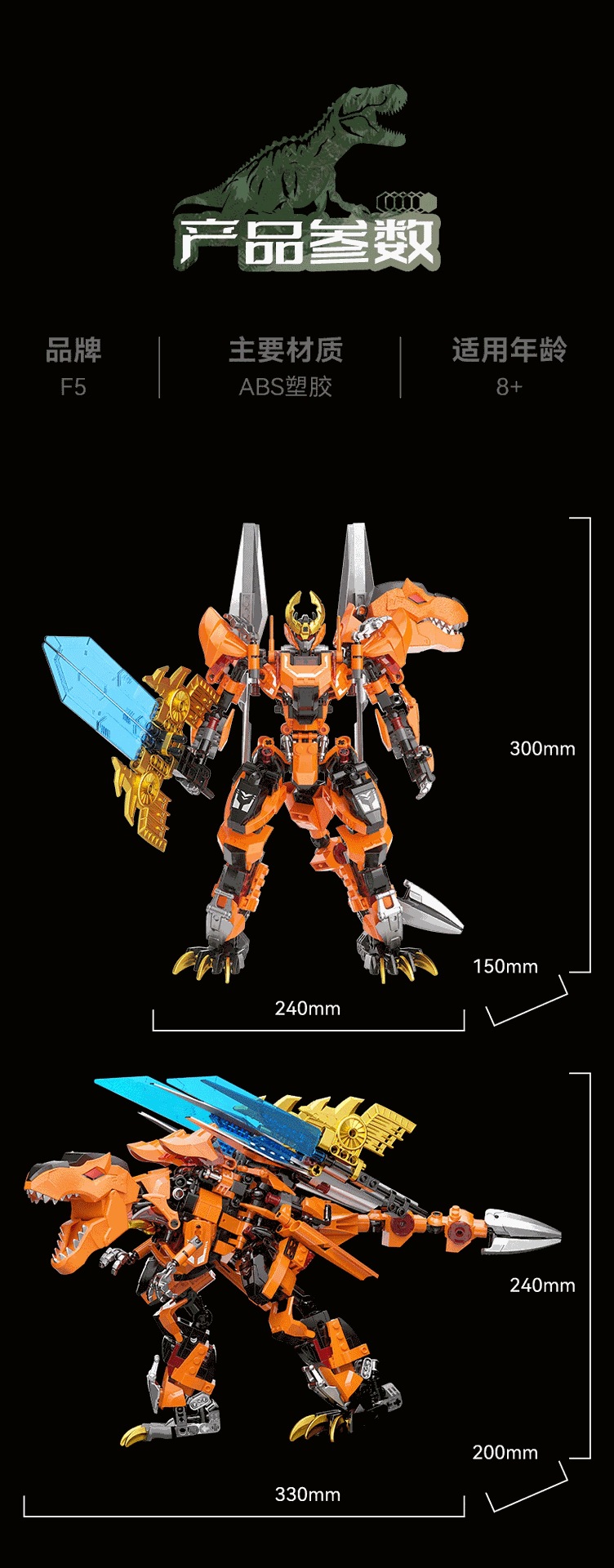 Jiaqi 빌딩 블록 [F5] 변형 된 메카 공룡 티라노사우루스 렉스 국가 바람 조립 소년 선물 로봇스토어 가기