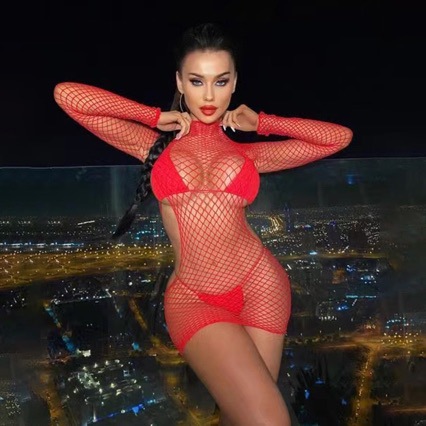 유럽과 미국의 전신 중공 섹시한 속옷 긴팔 백리스 메쉬 옷 찢어진 피스넷 가방 힙합 원피스 엑소 섹시한 점프 수트