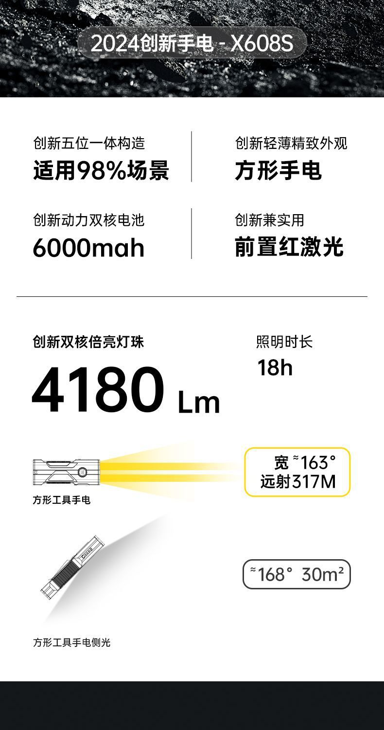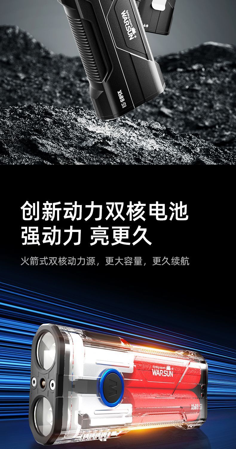 공장 직접 X608S 손전등 긴 배터리 수명 충전 강한 빛 장거리 야외 다기능 led 손전등스토어 가기