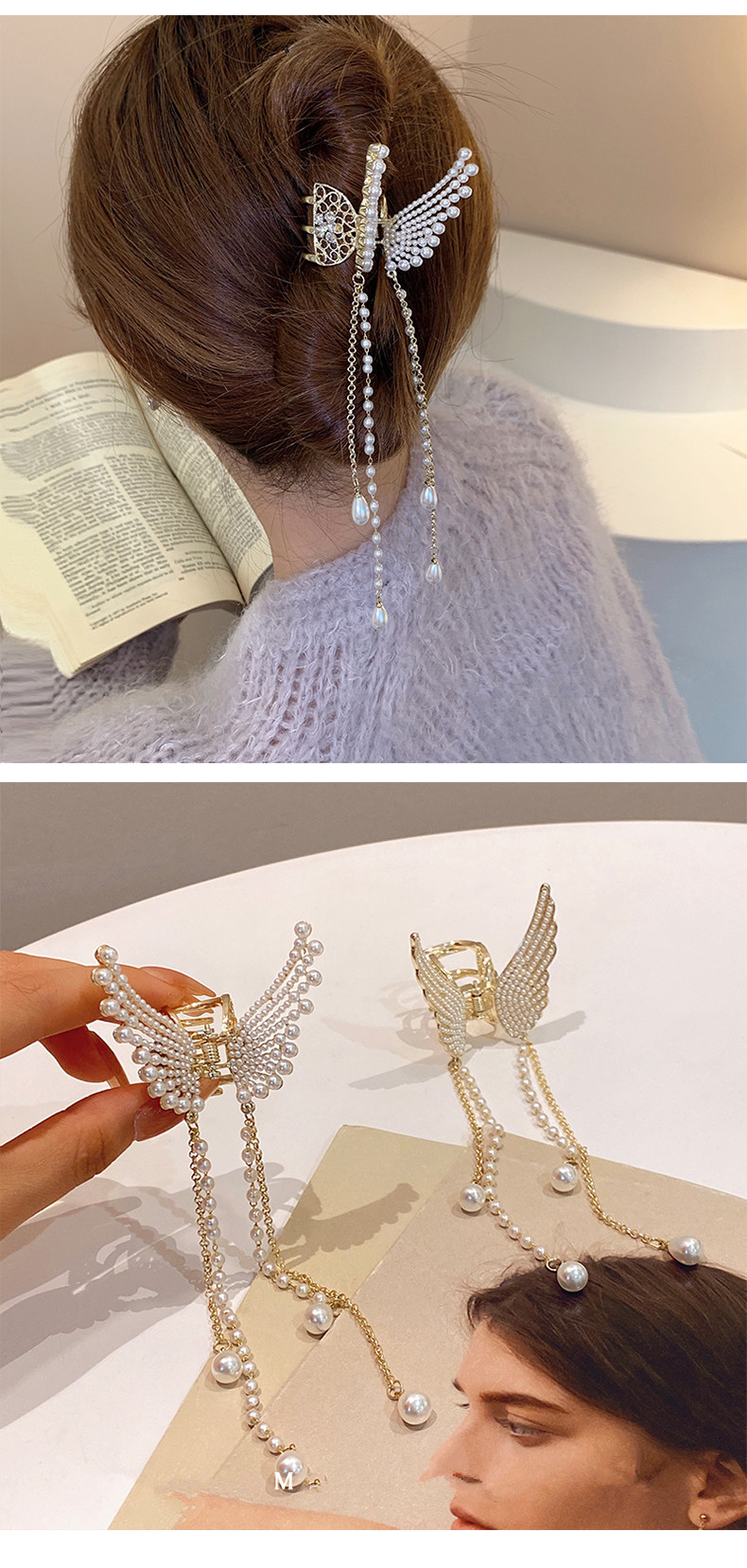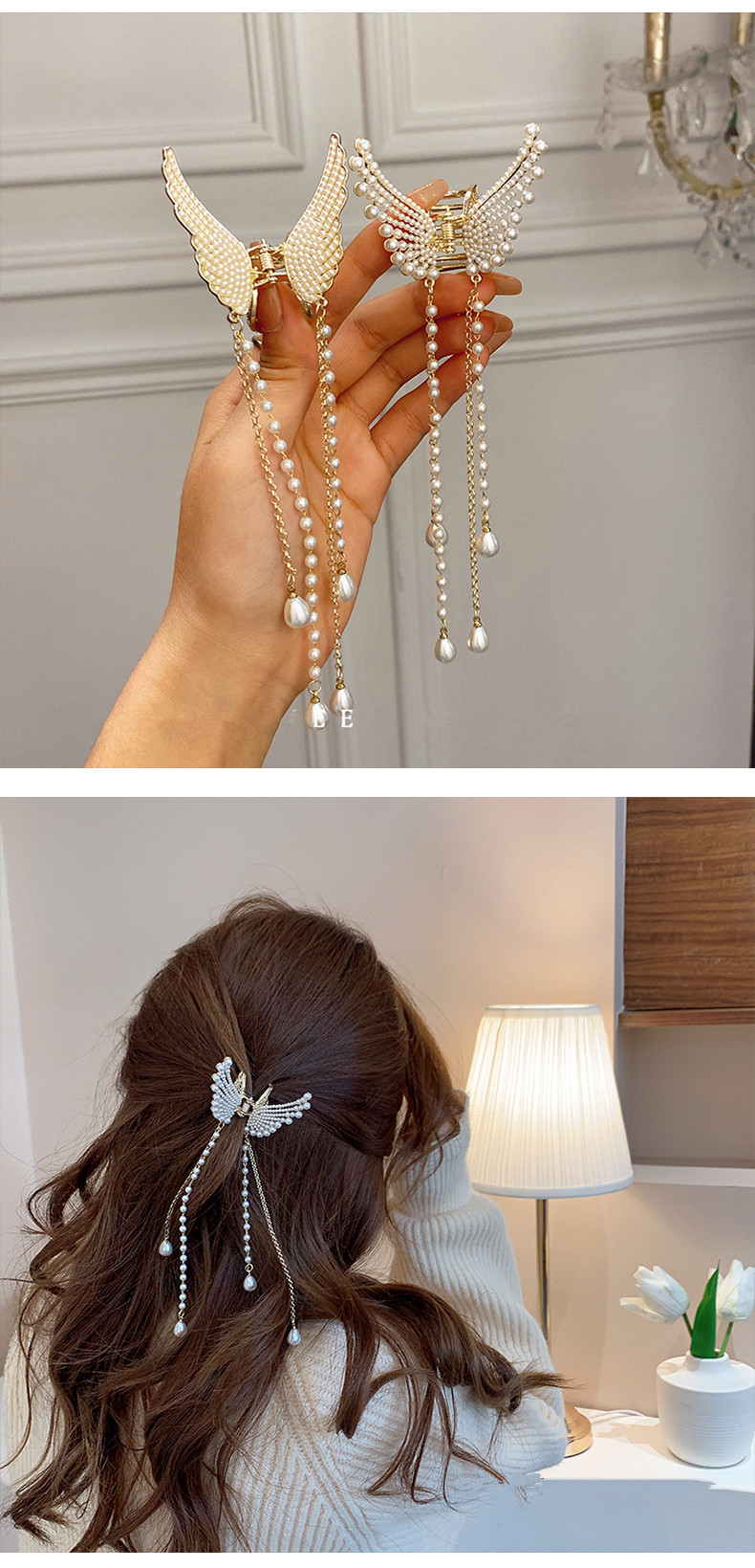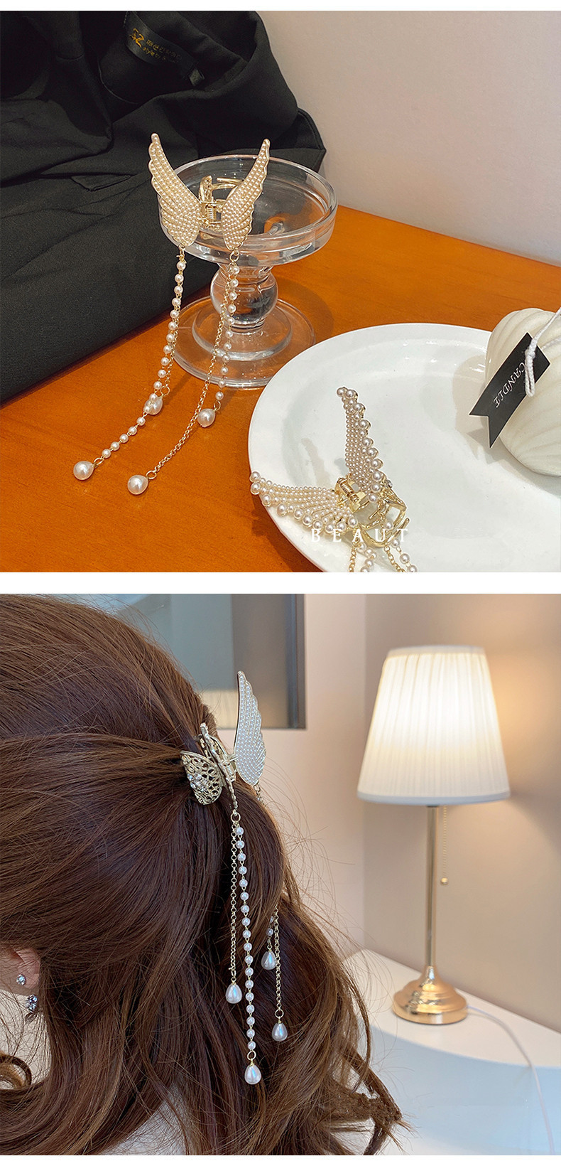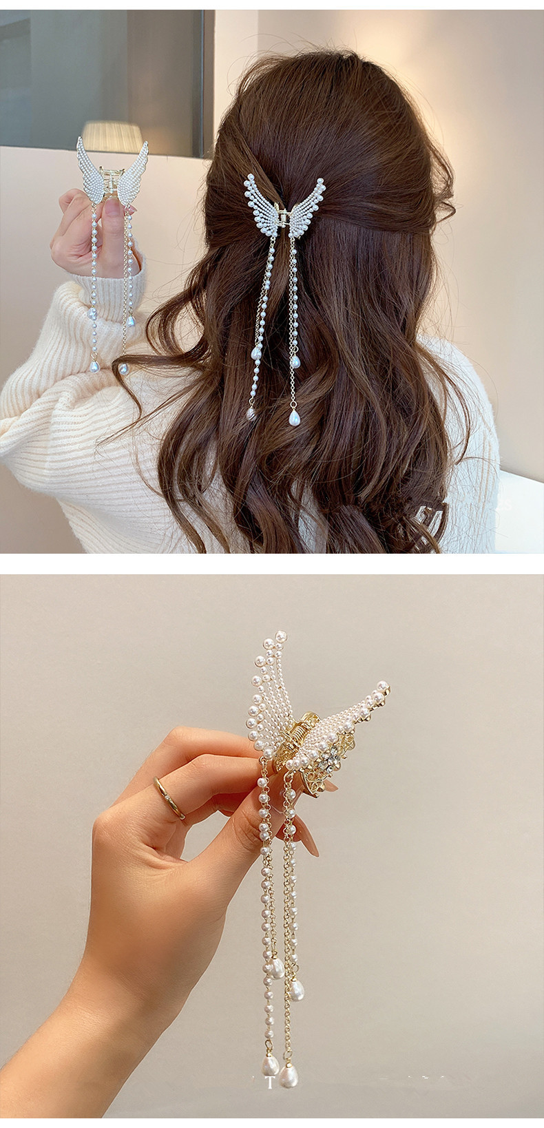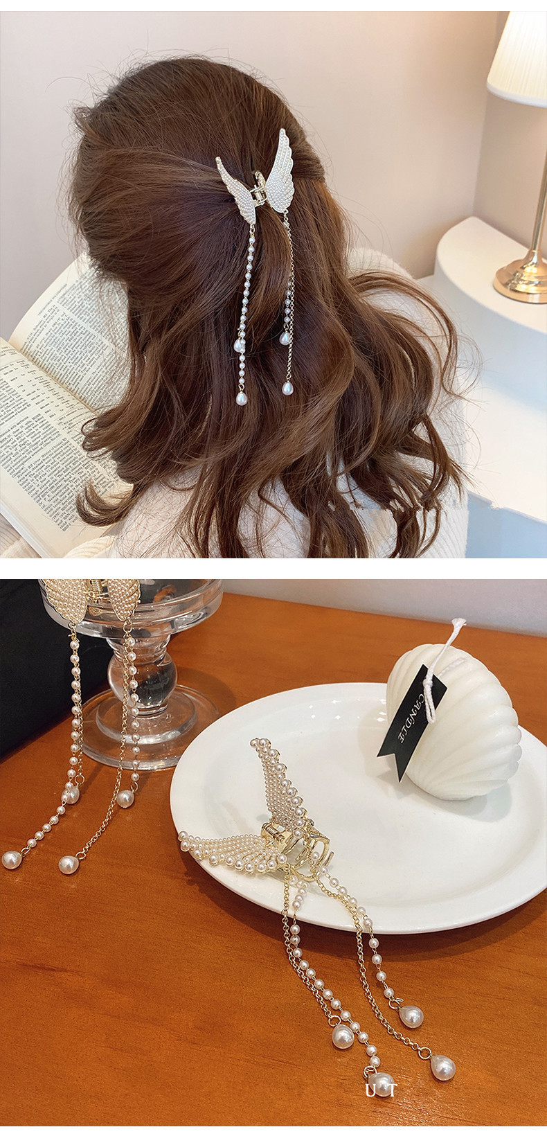 나비 상어 클립 슈퍼 요정 술 진주 머리핀 머리 높은 2025 기질 말 꼬리 하프 클립 머리핀 횡령 클립스토어 가기