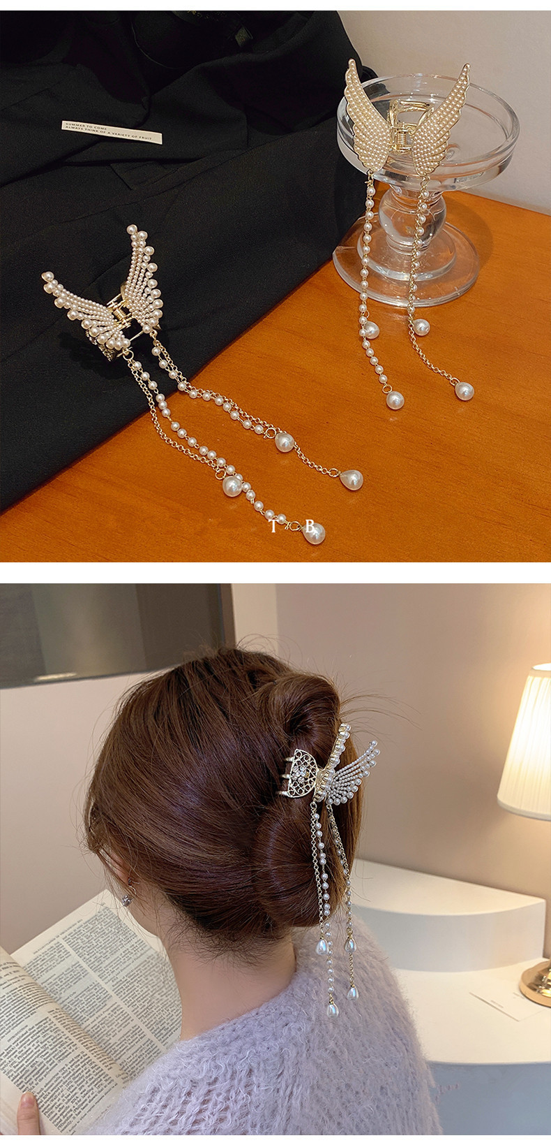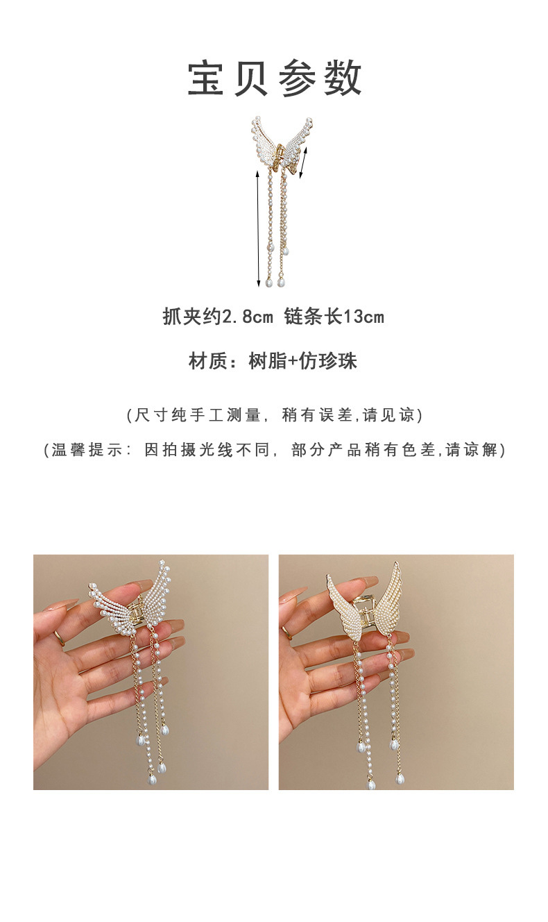 나비 상어 클립 슈퍼 요정 술 진주 머리핀 머리 높은 2025 기질 말 꼬리 하프 클립 머리핀 횡령 클립