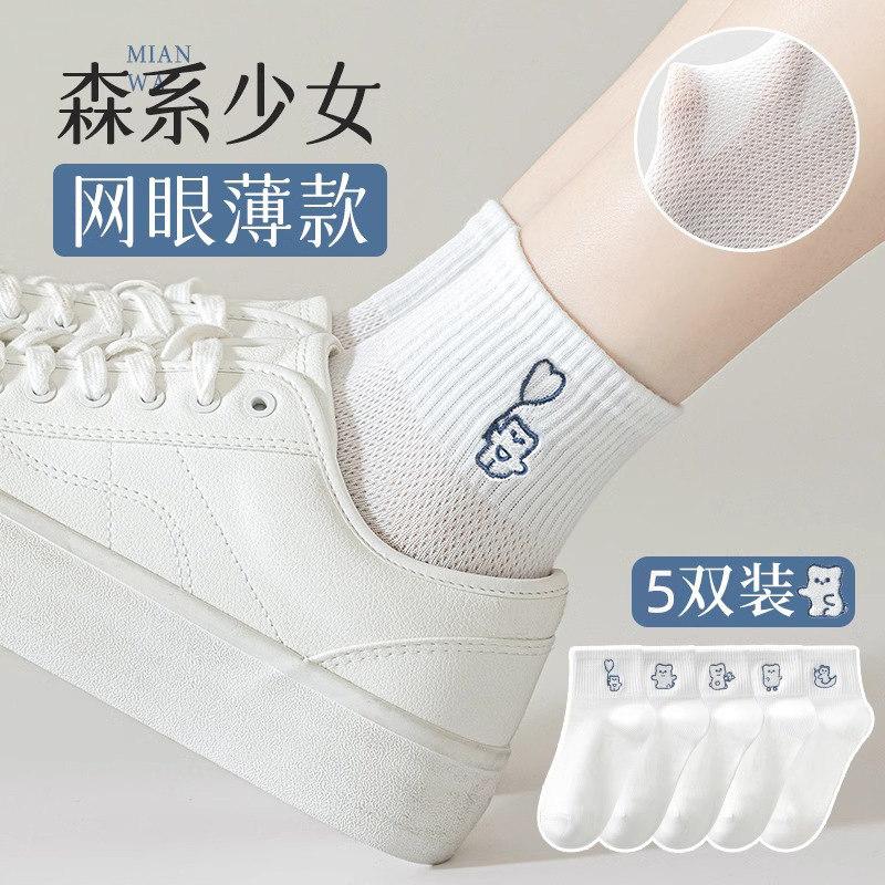 양말 여성의 봄과 가을 얇은 메쉬 통기성 여성 양말 만화 귀여운 소녀 여름 흰색 짧은 양말 Ins 유행 Zhuji스토어 가기