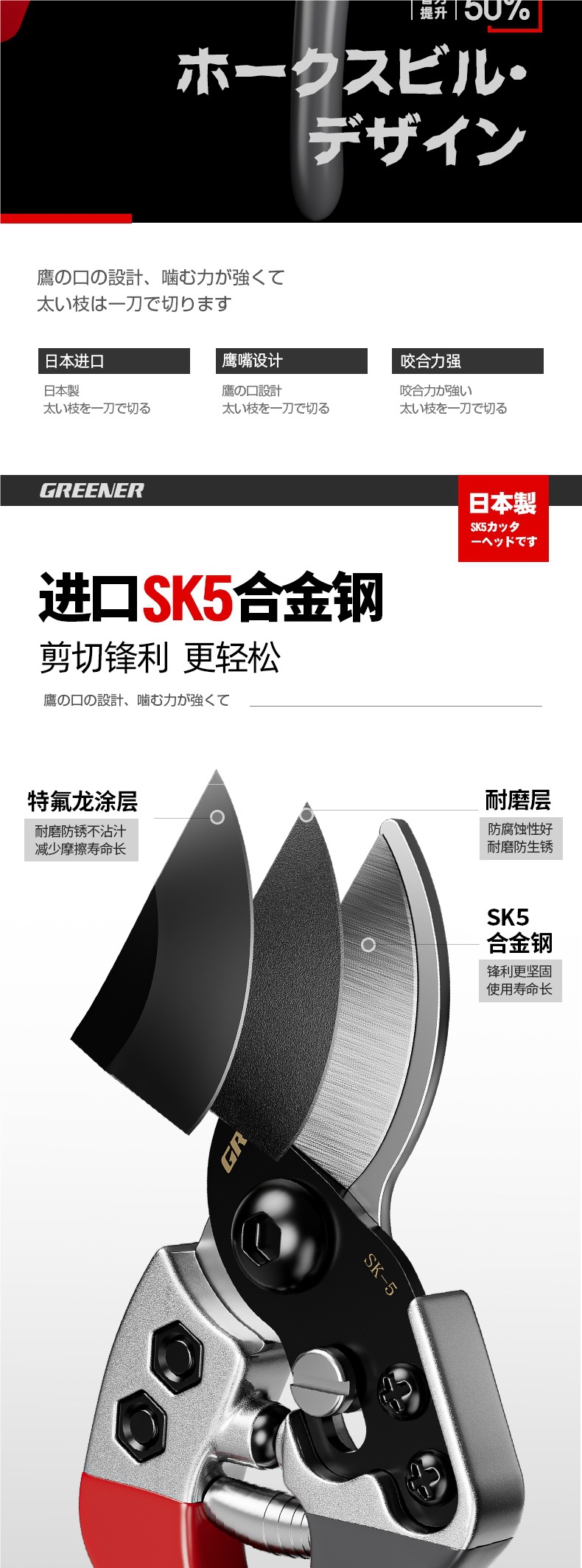 일본 수입 강철 칼 가지 치기 과일 나무 가지 치기 가위 가위 원예 가위 SK5 가지 꽃 가위 수출스토어 가기