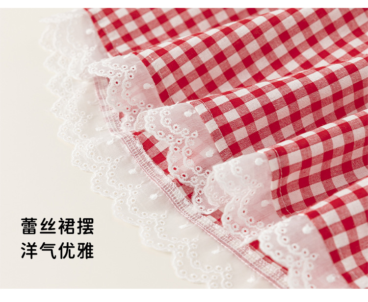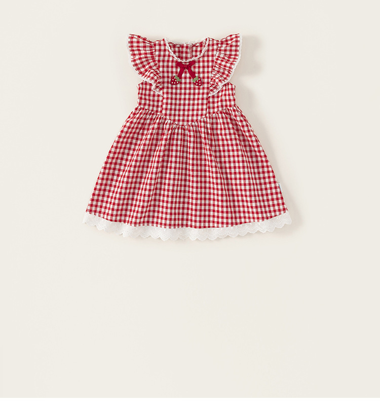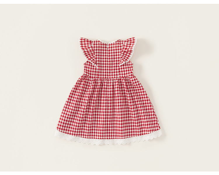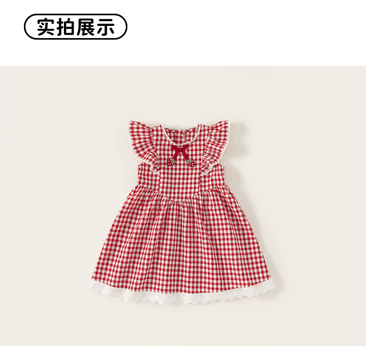 Youbao 아동복 소녀 레이스 격자 무늬 원피스 2025 여름 아기 소녀의 비행 슬리브 활 어린이 공주 원피스스토어 가기