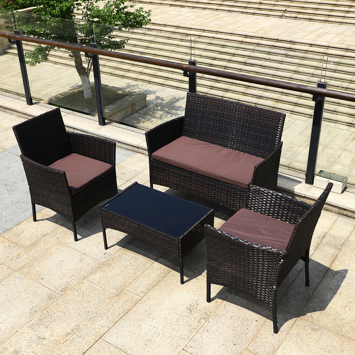 야외 안뜰 등나무 의자 티 테이블 4 조각 정원 테라스 빌라 등나무 의자 조합 레저 호텔 가구