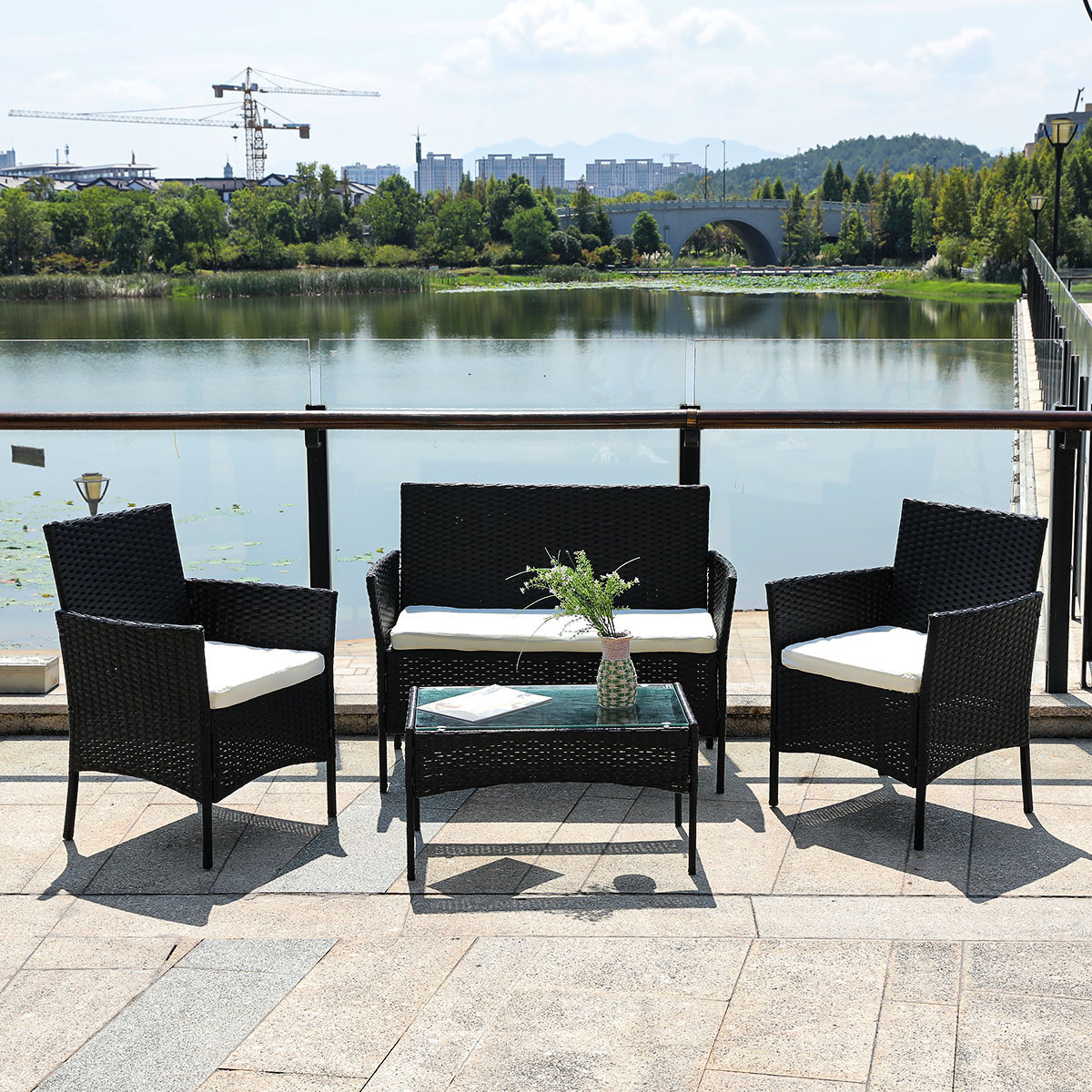 야외 안뜰 등나무 의자 티 테이블 4 조각 정원 테라스 빌라 등나무 의자 조합 레저 호텔 가구스토어 가기