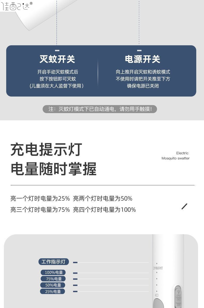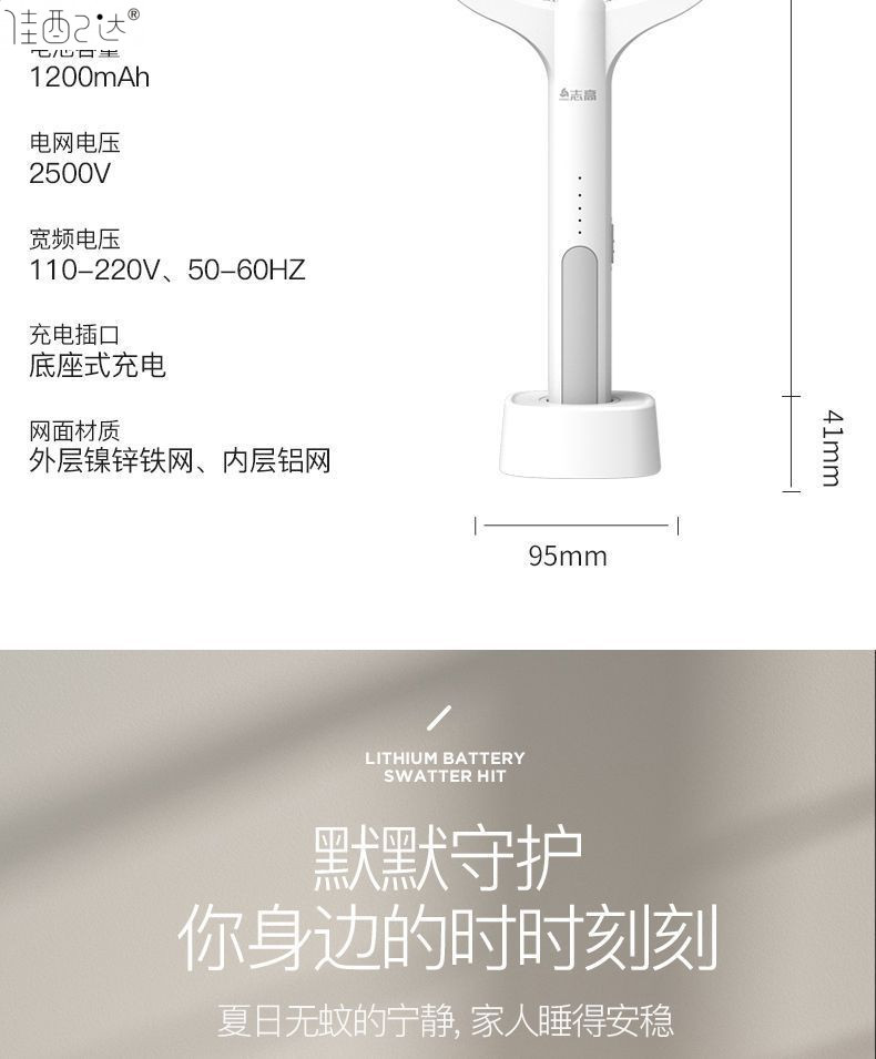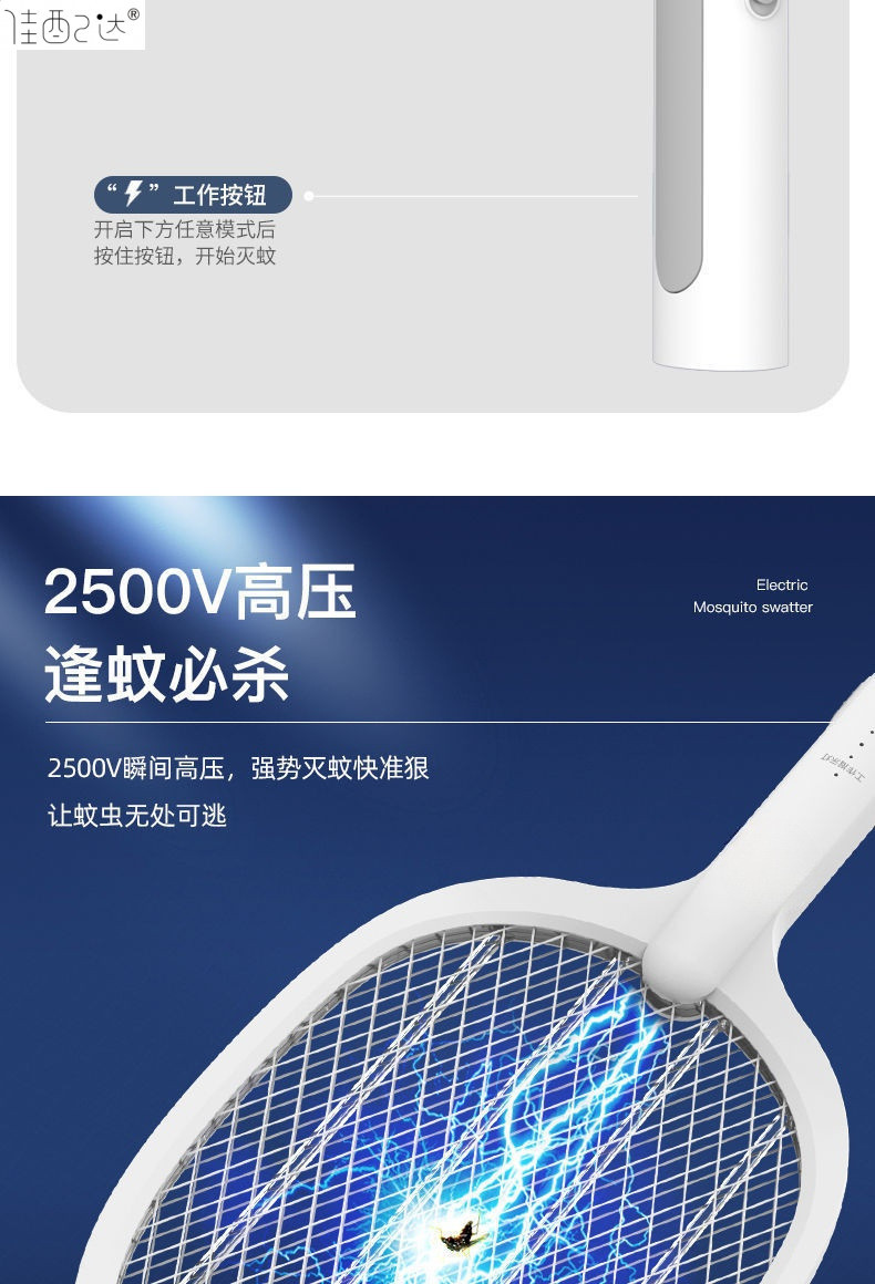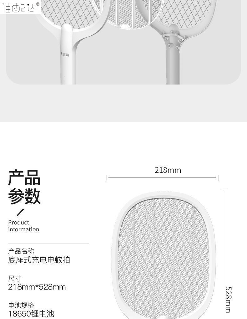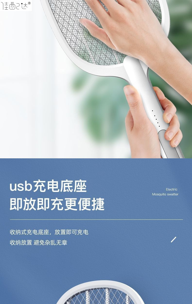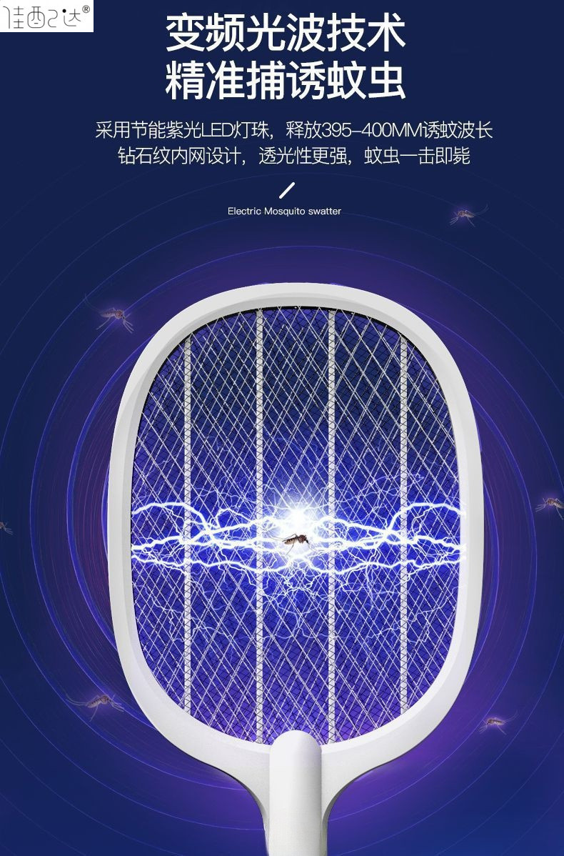 • Chigo 전기 모기채 + 보라색 조명 1개 + 베이스