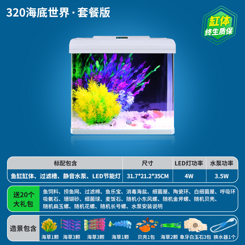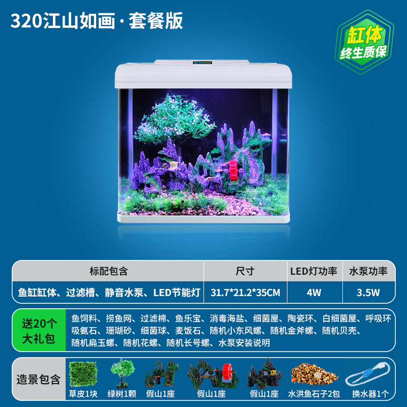 • **HD 유리 320 Jiangshan/플러스 20개 선물 패키지★워터 펌프 + 조명 + 산소 + 여과 시스템 포함★**