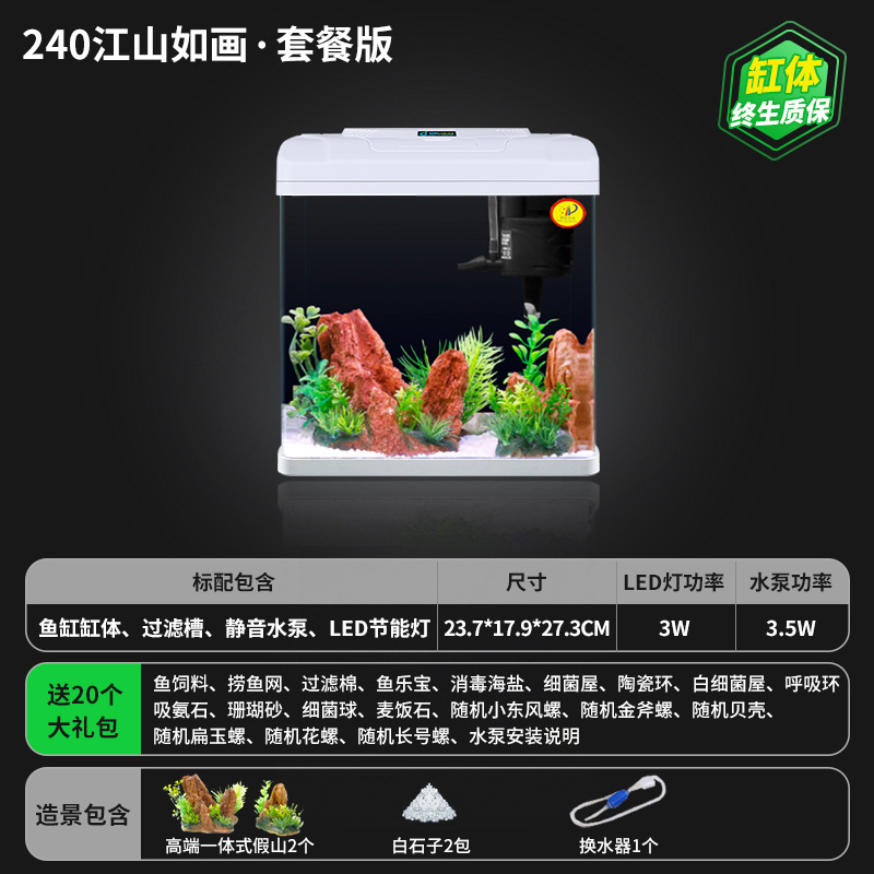 유리 물고기 탱크 2024 거실 작은 가정용 데스크탑 금붕어 탱크 생태 새로운 직사각형 물 무료 수족관스토어 가기